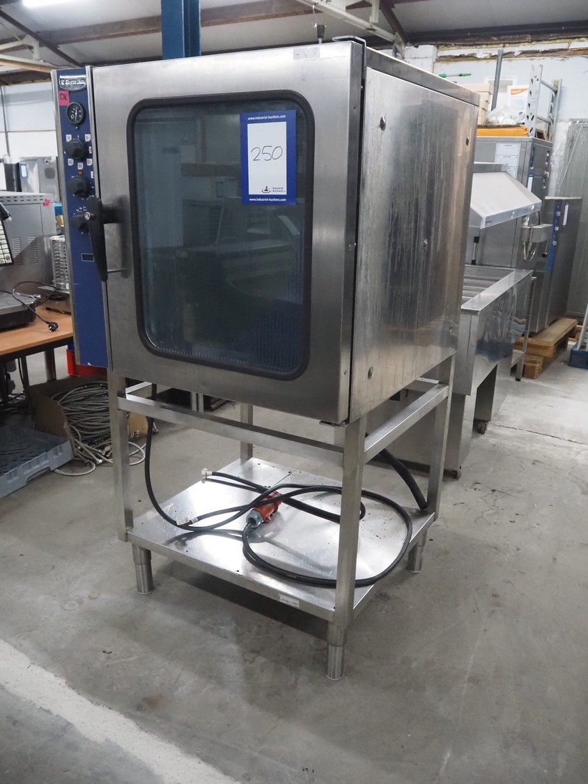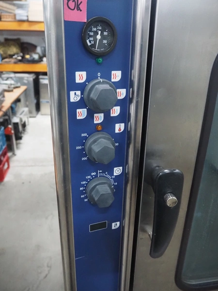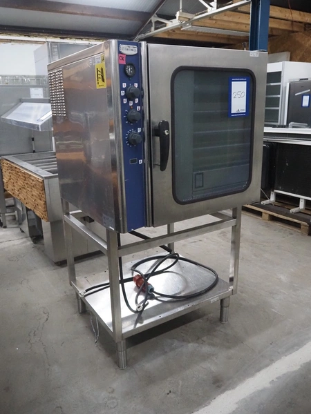 Electrolux combi steamer, model: FCE101, serial number: 43600003, year of construction: 2004, 380/400 V, 3 Ph, 50 Hz, 10 floors, floor dimensions: (10x) 530 mm x 280 mm, total dimensions: 960 mm x 890 mm x 1700 mm.