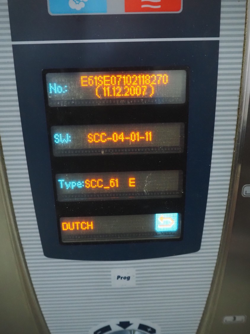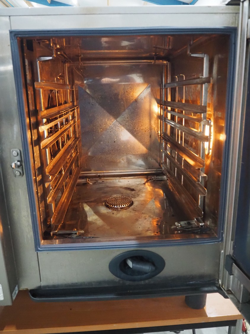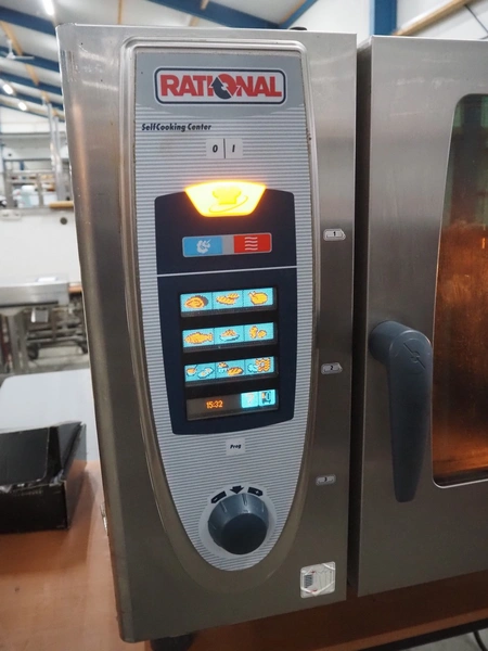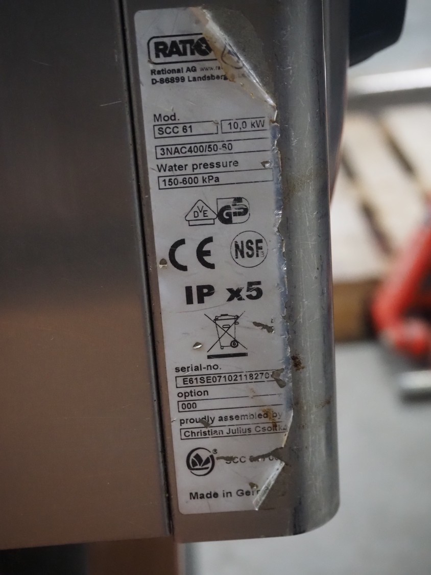 Rational combi steamer, model: SCC 61, serial number: E61SE07102118270, year of construction: 2007, 400 V, 3 Ph, 50-60 Hz, 6 floors, floor dimensions: (6x) 400 mm x 580 mm, total dimensions: 850 mm x 830 mm x 830 mm.