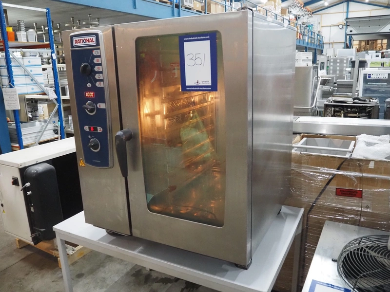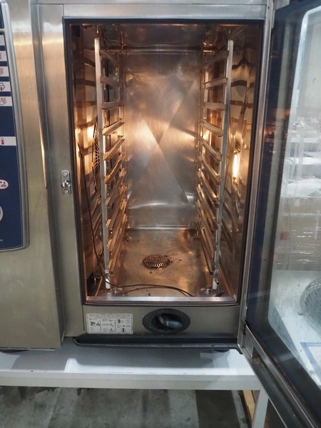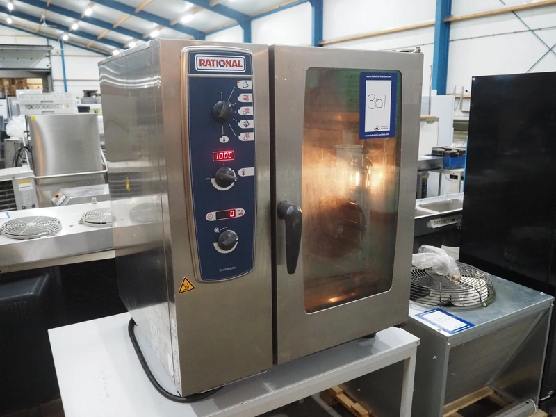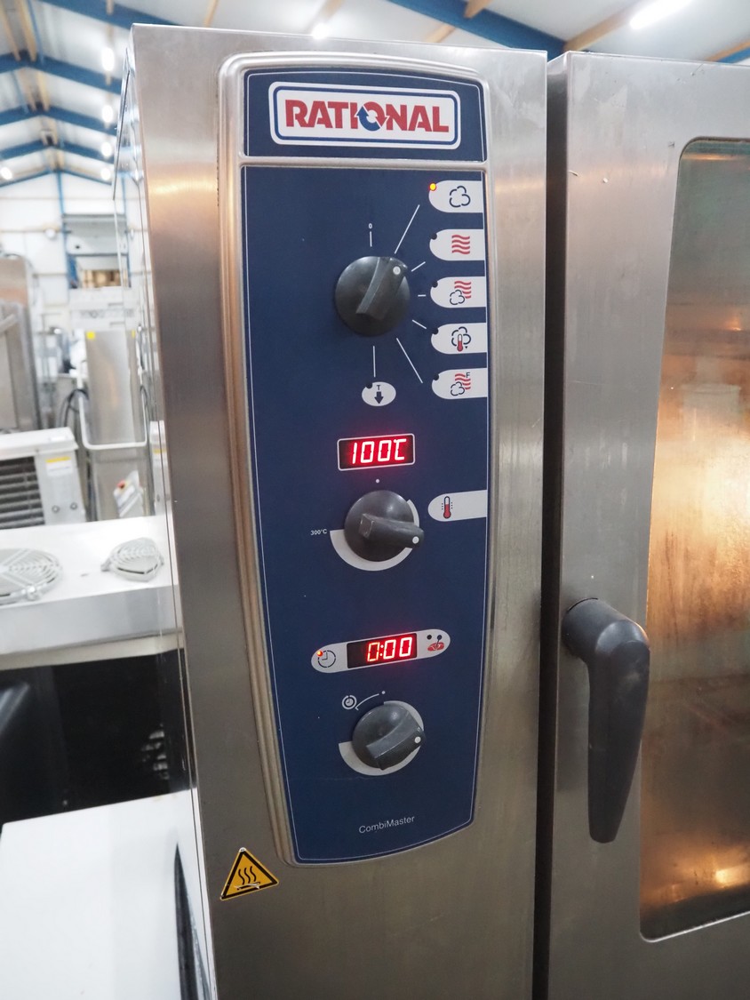 Rational combi steamer, type: MCM 101, 400 V, 3 Ph, 50/60 Hz, 19.0 kW, water pressure: 150–600 kPa, 10 floors, floor dimensions: (10x) 330 mm x 530 mm, total dimensions: 850 mm x 800 mm x 1050 mm.