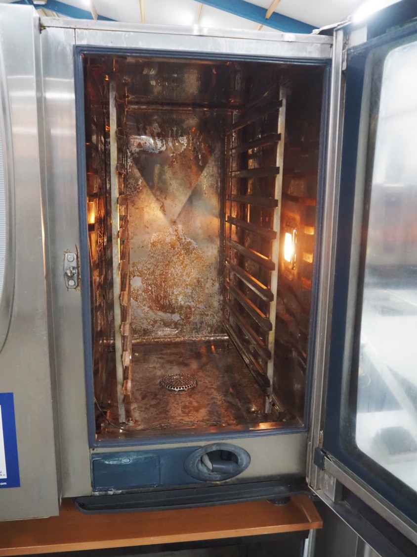 Rational combi steamer, type: SCC 101 G, serial number: G11SG09122200859, year of construction: 2009, 10 floors, floor dimensions: (10x) 540 mm x 330 mm, total dimensions: 850 mm x 800 mm x 1040 mm.