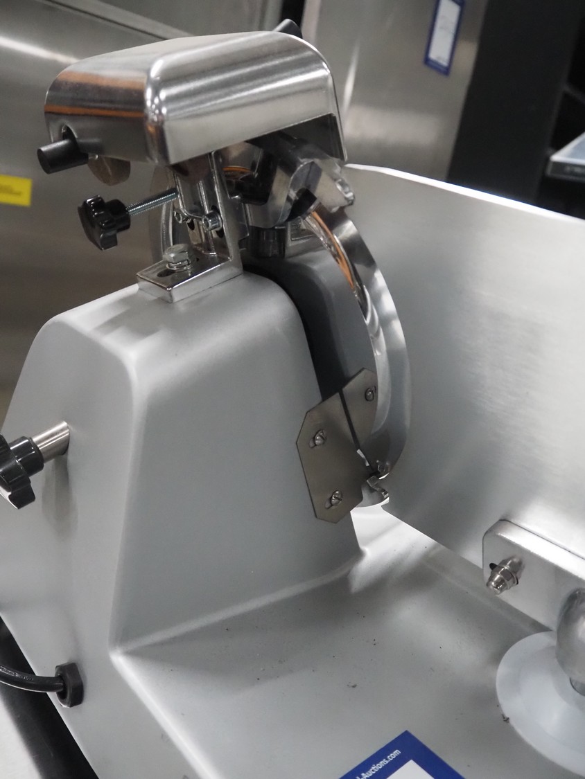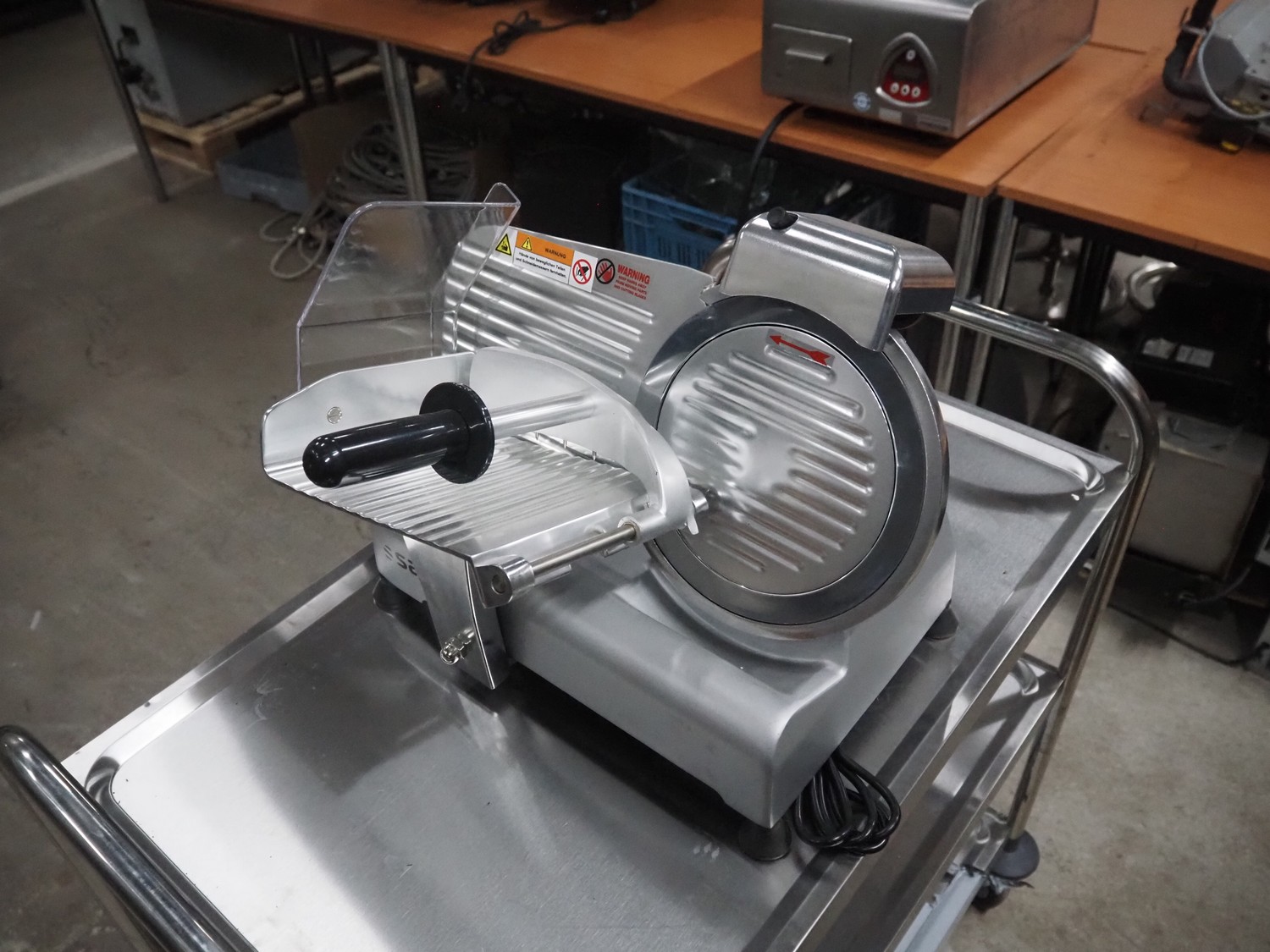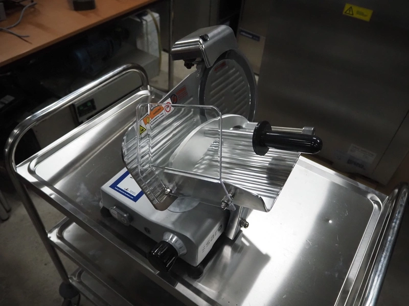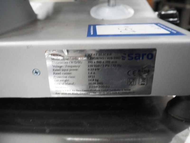 Saro Gastro-Products GmbH slicer, type: IVORNO/418-1003, serial number: 210820020, year of construction: 10.08.2021, 230 V, 1 Ph, 50 Hz, 1 A, 0.23 kW, dimensions: 500 mm x 400 mm x 360 mm.