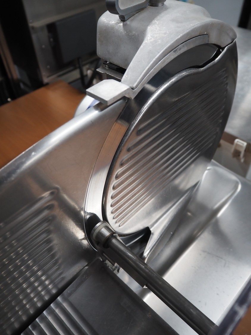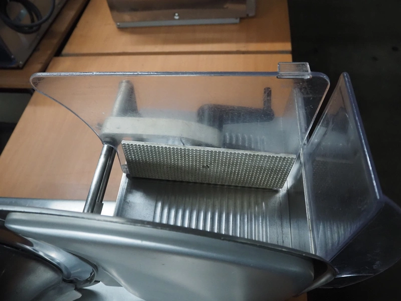 Berkel slicer, type: 834 S, number: 629834, year of construction: 1996, 230 V, 1 Ph, 50 Hz, 220 W, dimensions: 700 mm x 600 mm x 520 mm.