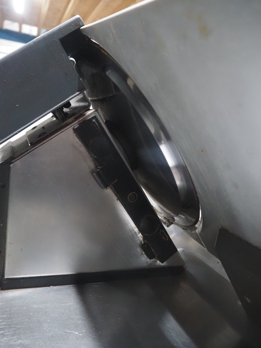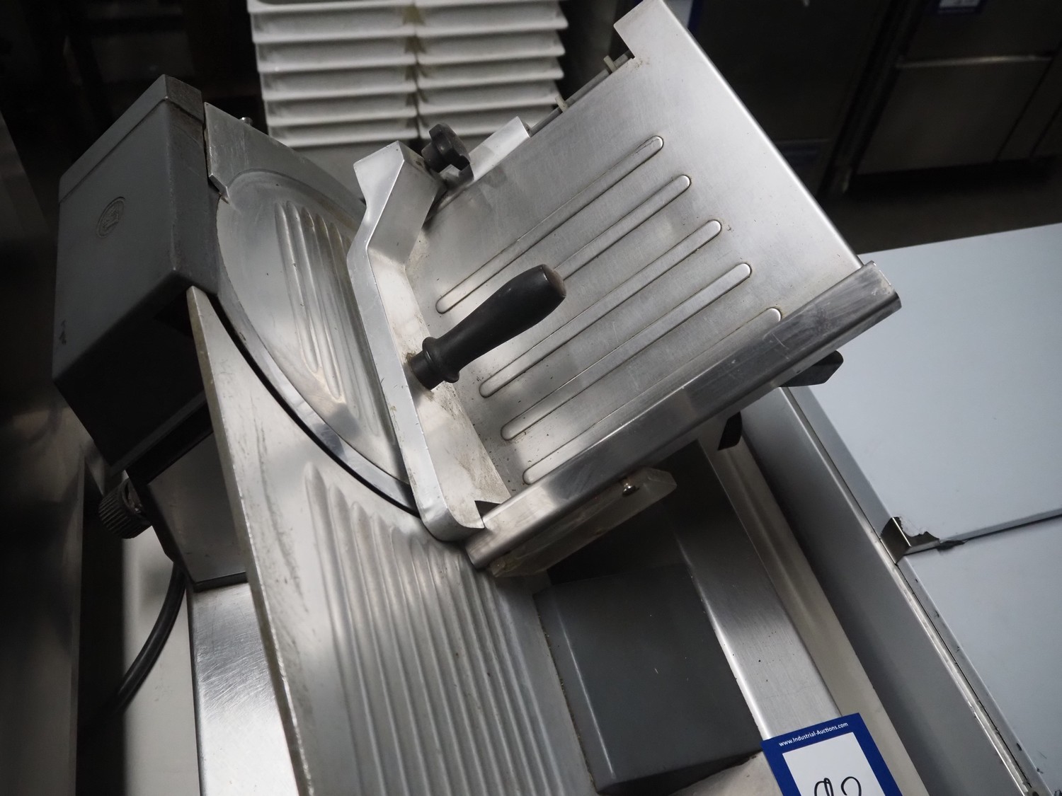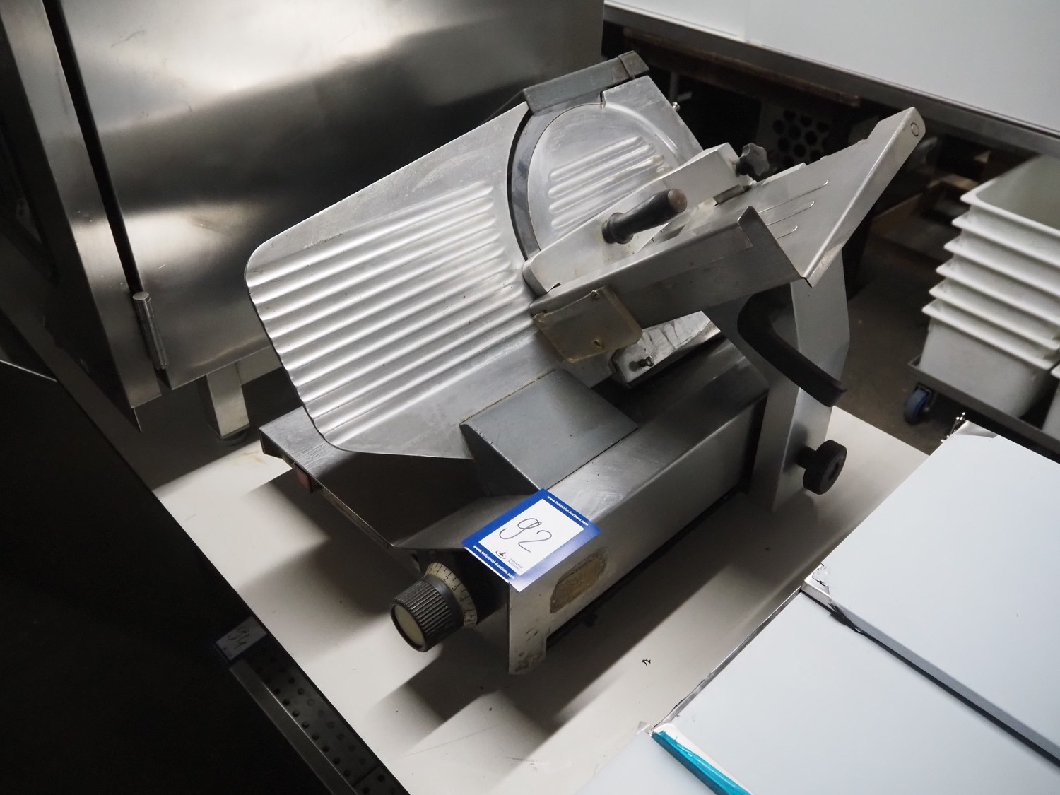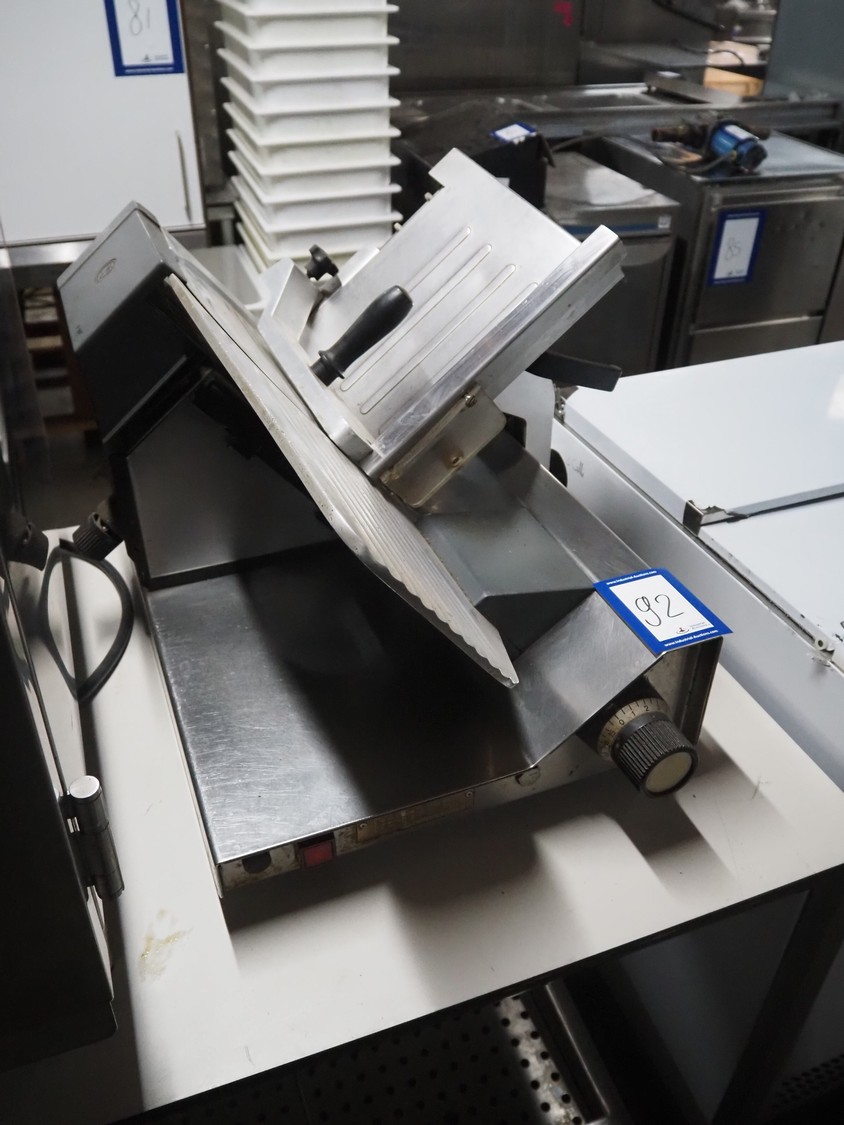 Italiana Macchi slicer, model: AV 330 S, serial number: 24163, 220 V, 50 Hz, 1.7 A, 0.18 kW, dimensions: 660 mm x 600 mm x 440 mm.