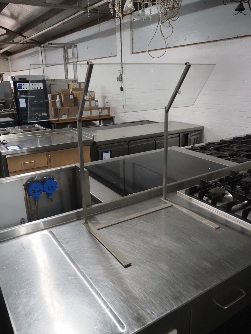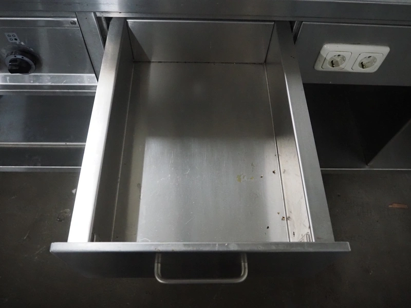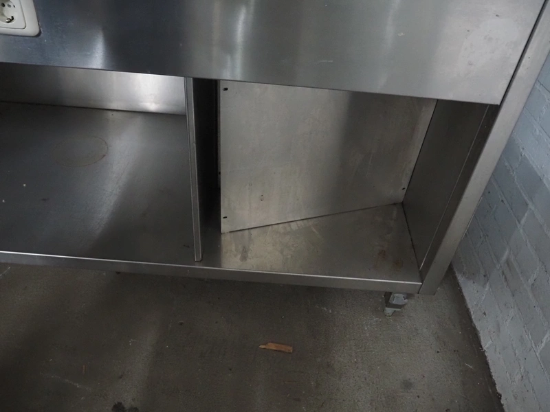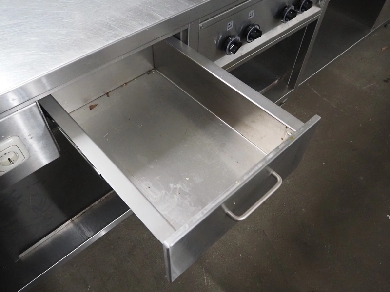S/s work bench with 4-pits furnace and double sink, dimensions: 3600 mm x 700 mm x 950 mm.