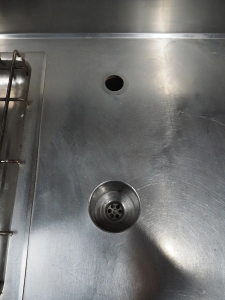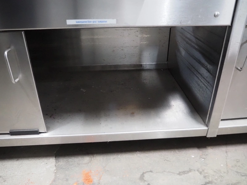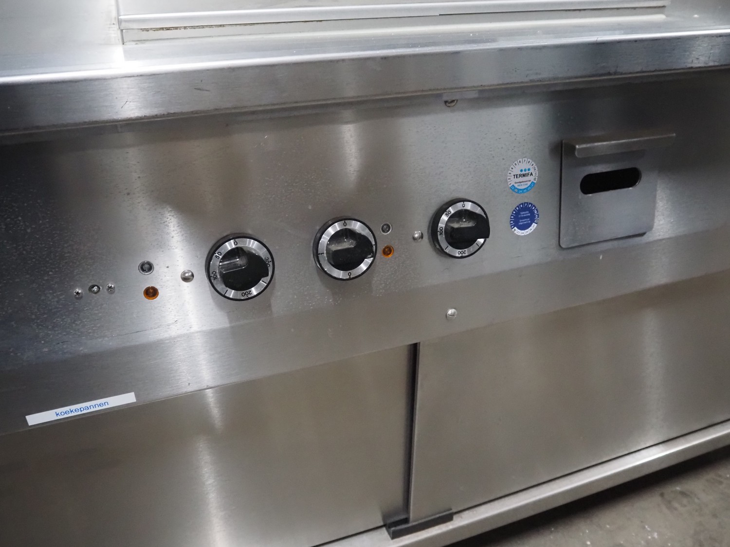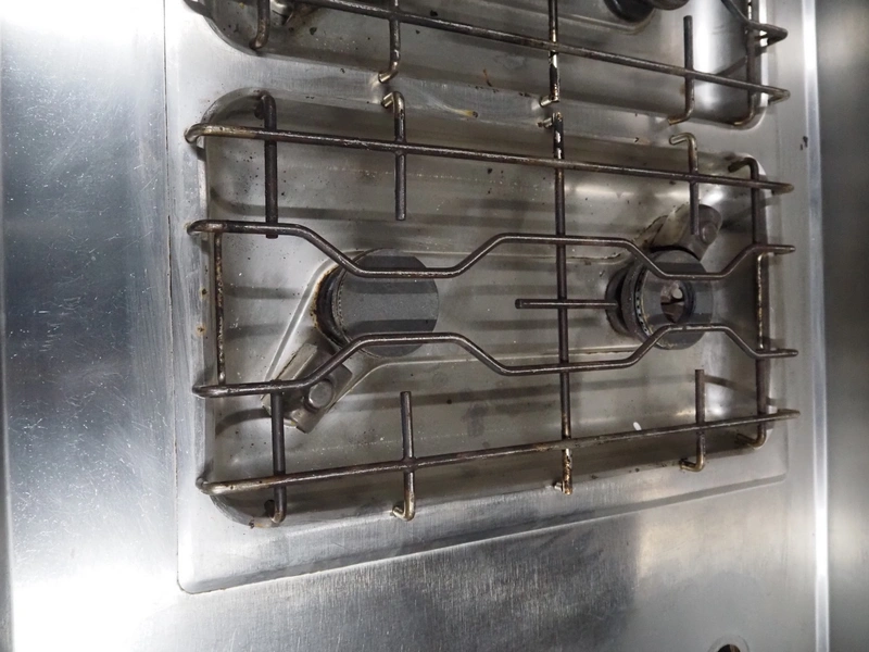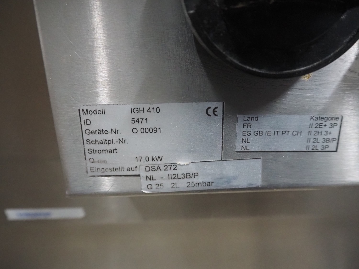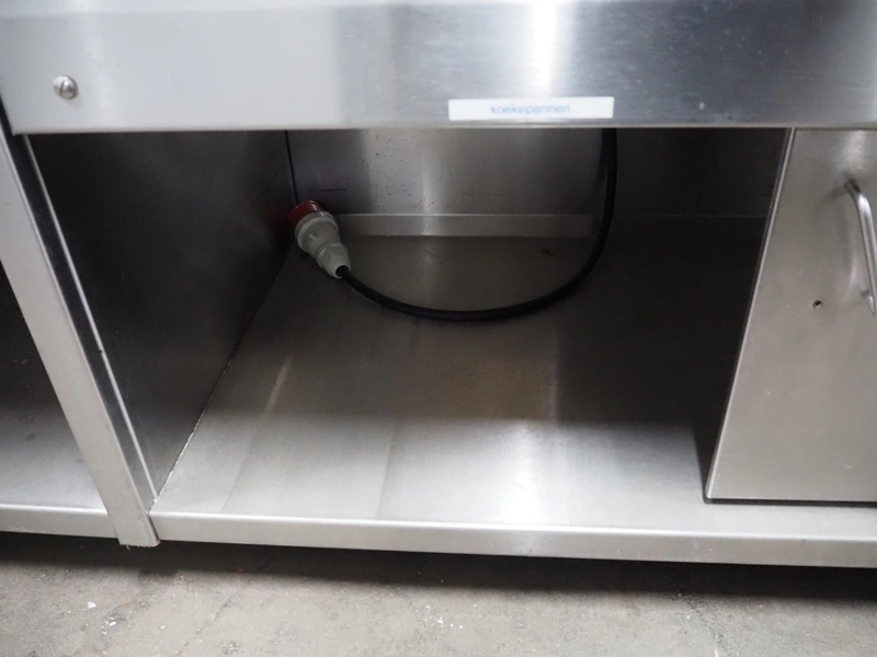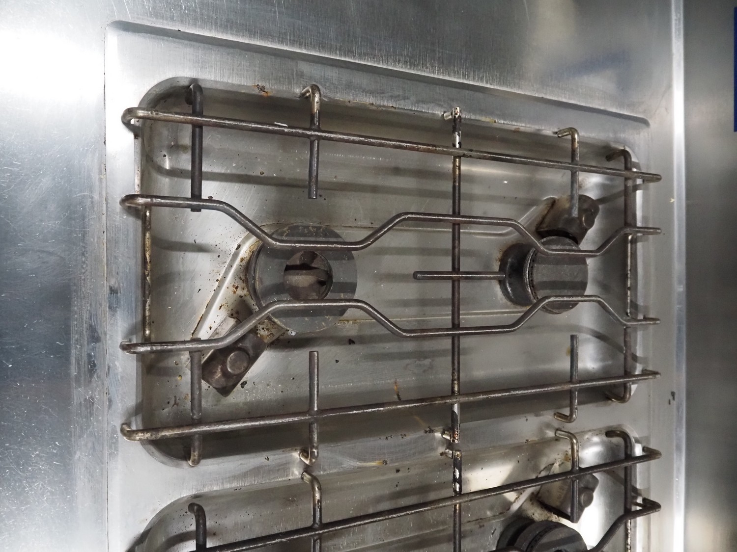 Metos workbench with 4 pits stove and electric heated hob, model: IGH 410, 17 kW, dimensions: 2980 mm x 950 mm x 1120 mm.