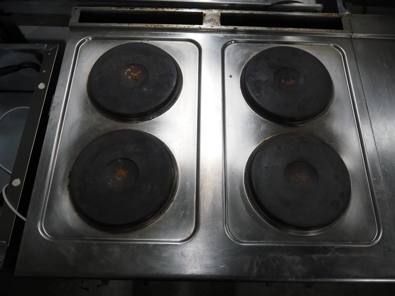 Electrolux furnace with 4 burners and double fryer, dimensions: 2000 mm x 750 mm x 980 mm.