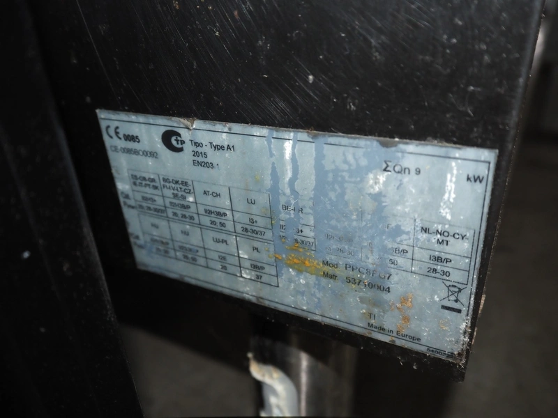 S/s hot plate, model: PPC8FG7, serial number: 53710004, dimensions plate: 750 mm x 560 mm, total dimensions: 700 mm x 800 mm x 1040 mm.