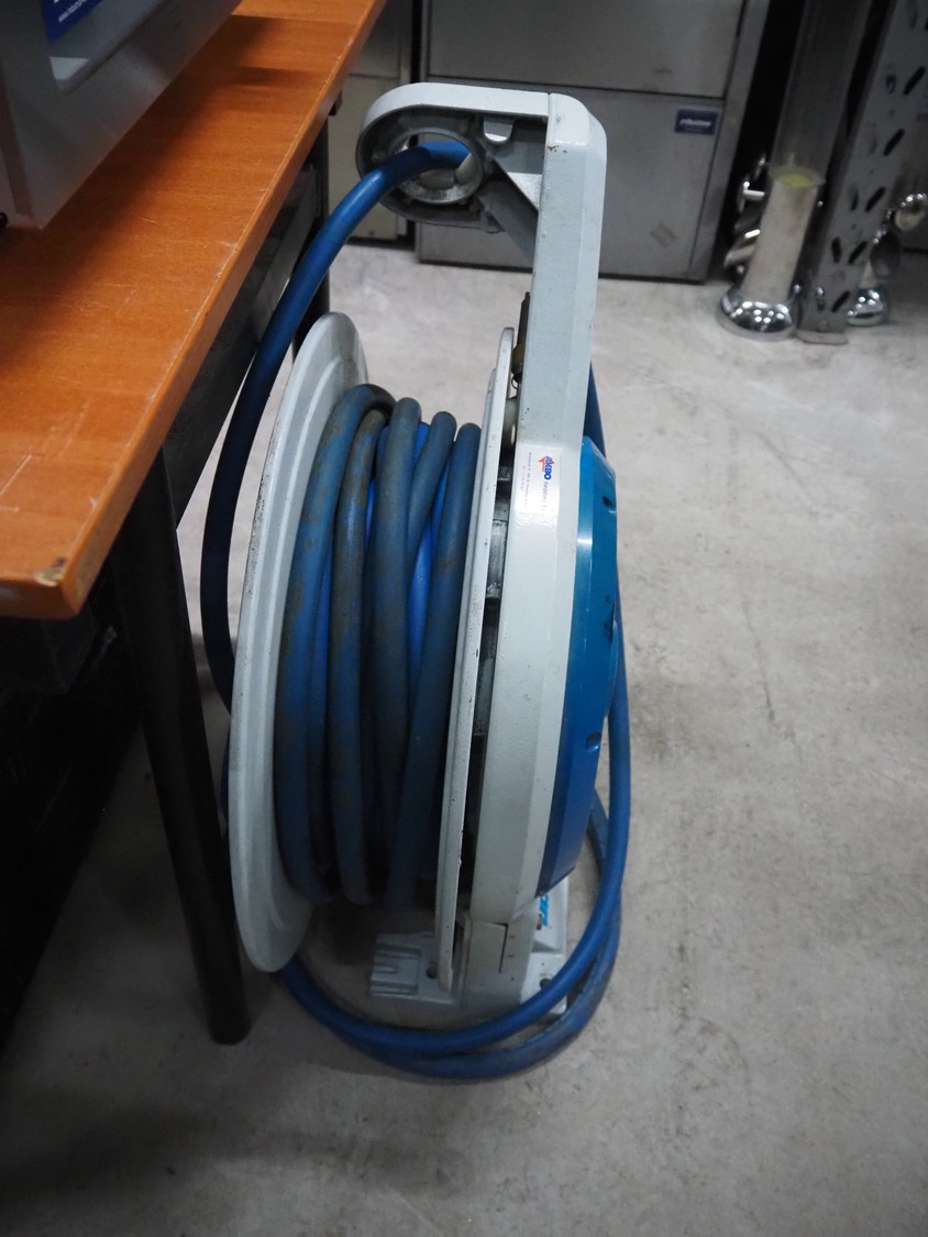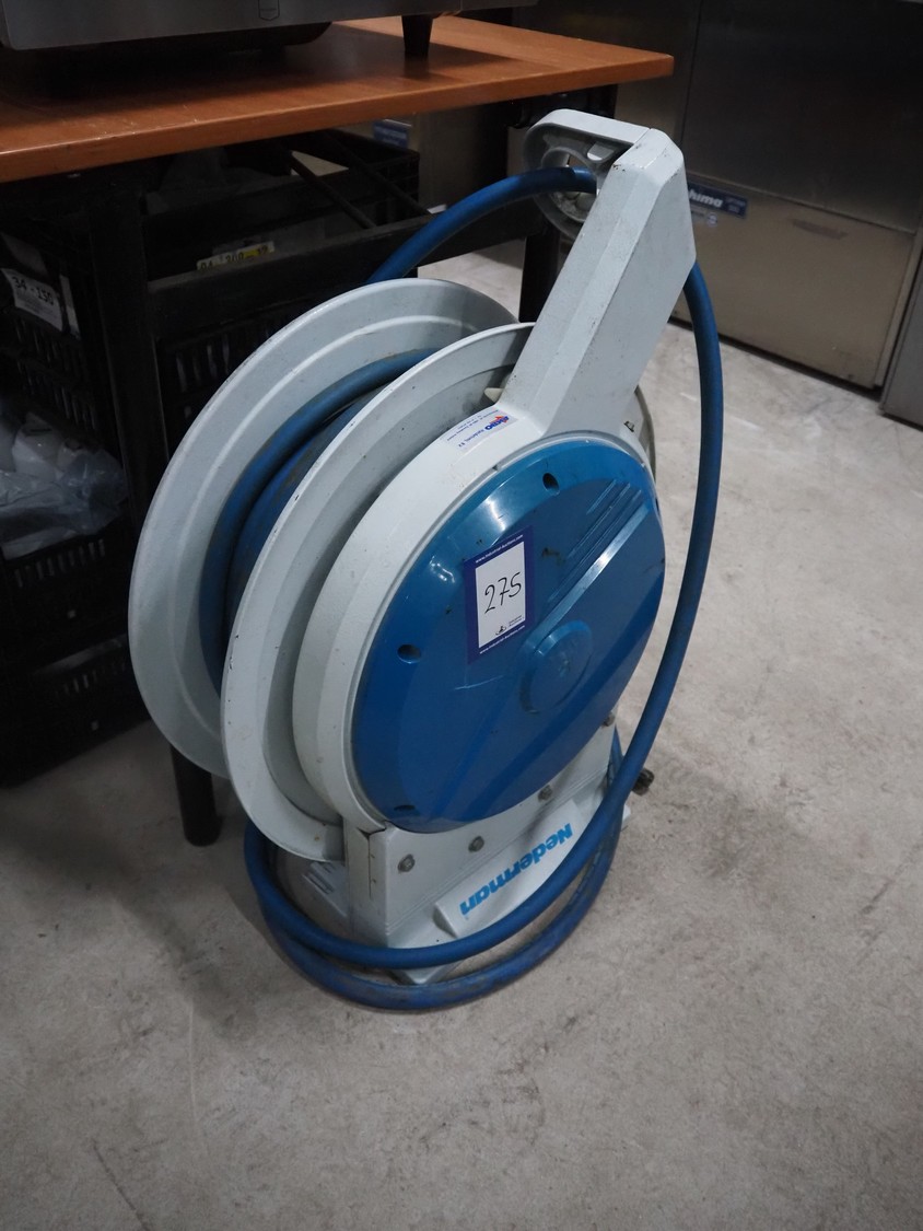 Nedermann hose reel, diameter reel: 500 mm, total dimensions: 700 mm x 300 mm x 500 mm.