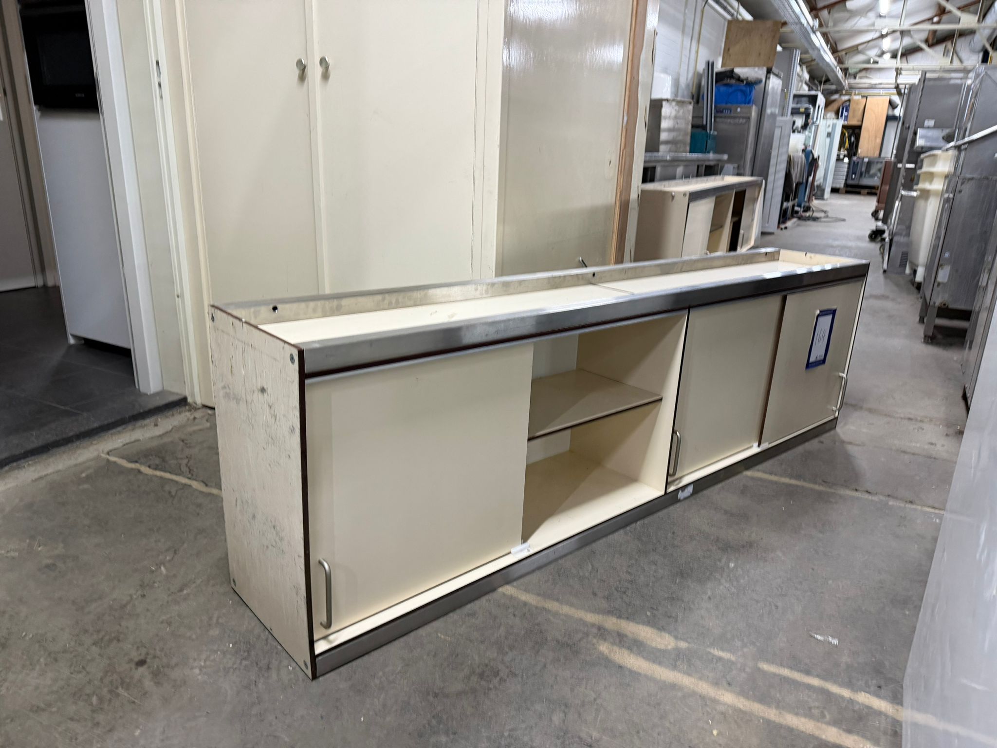 Cabinet, dimensions: 2100 mm x 360 mm x 610 mm. 1 door is missing.