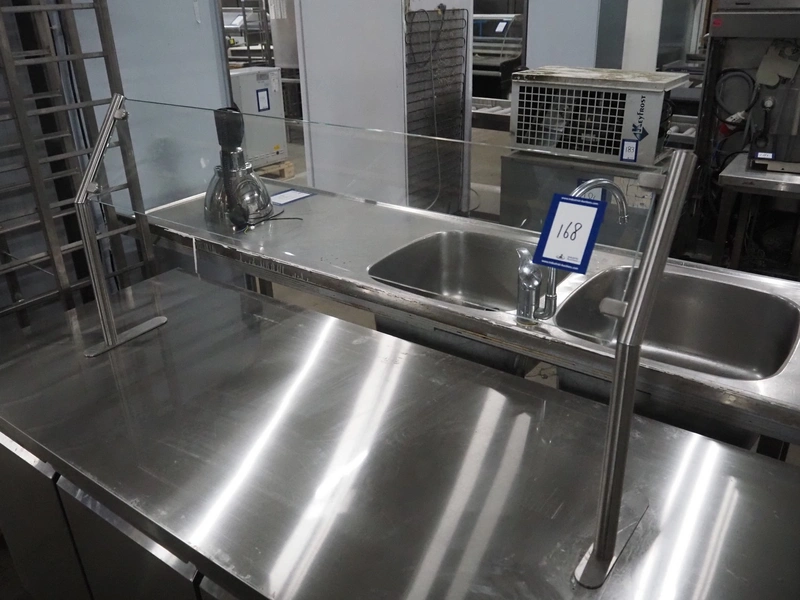 S/s frame with glass, dimensions: 1200 mm x 220 mm x 560 mm.