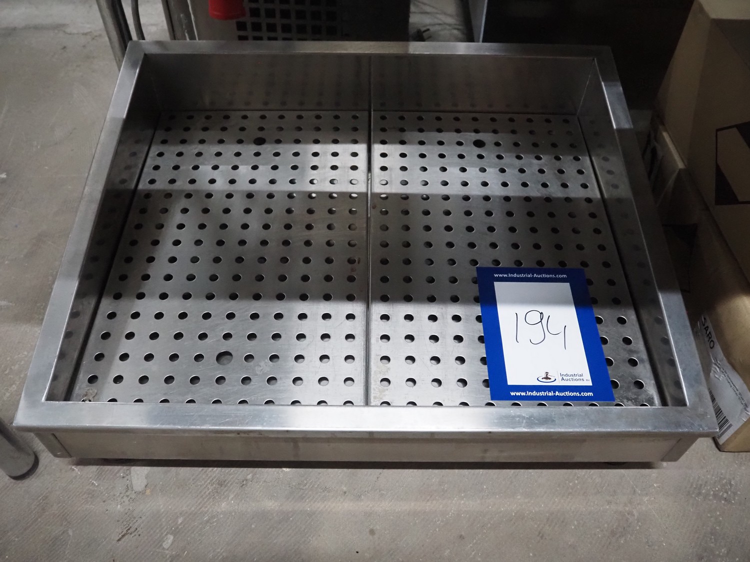 S/s tub for crushed ice, inside dimensions: 550 mm x 690 mm, total dimensions: 750 mm x 620 mm x 260 mm.