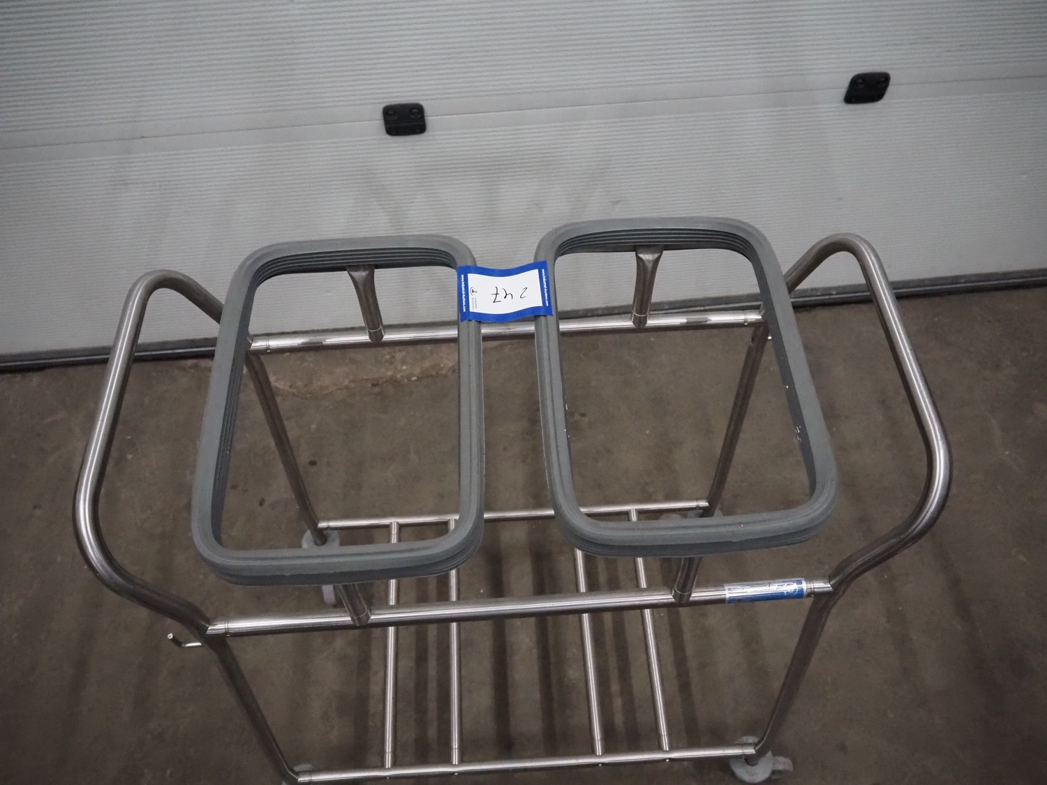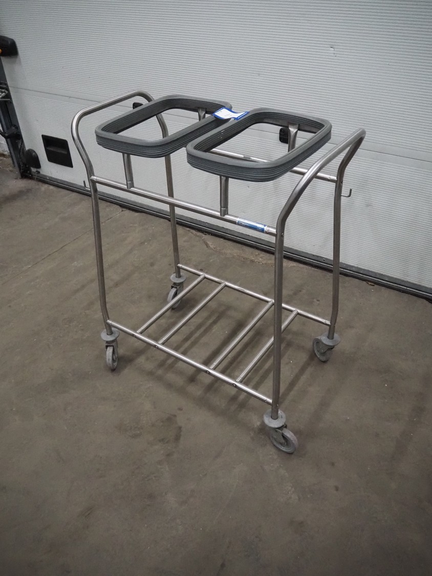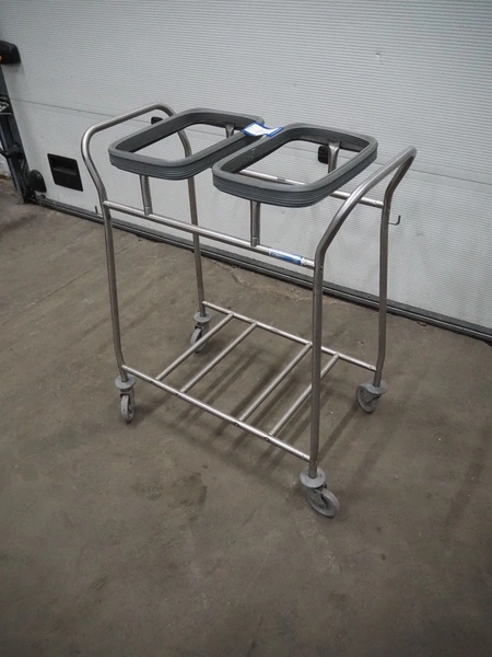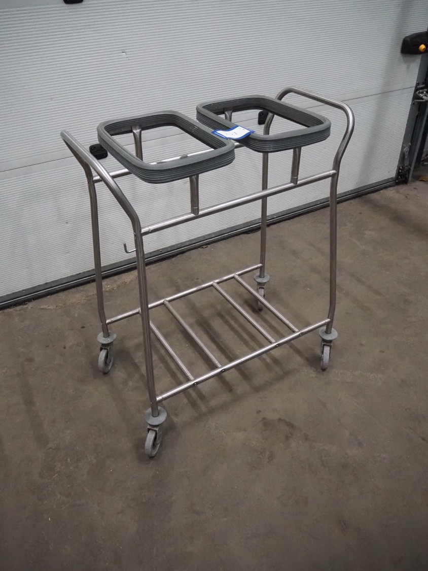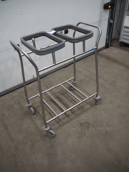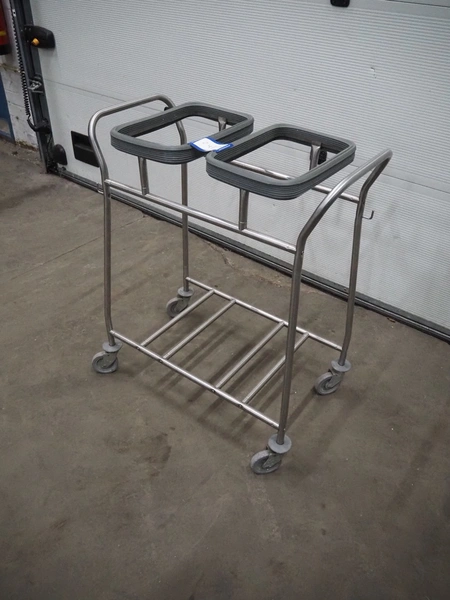 Mobile s/s waste bag holder, dimensions: 800 mm x 460 mm x 990 mm.