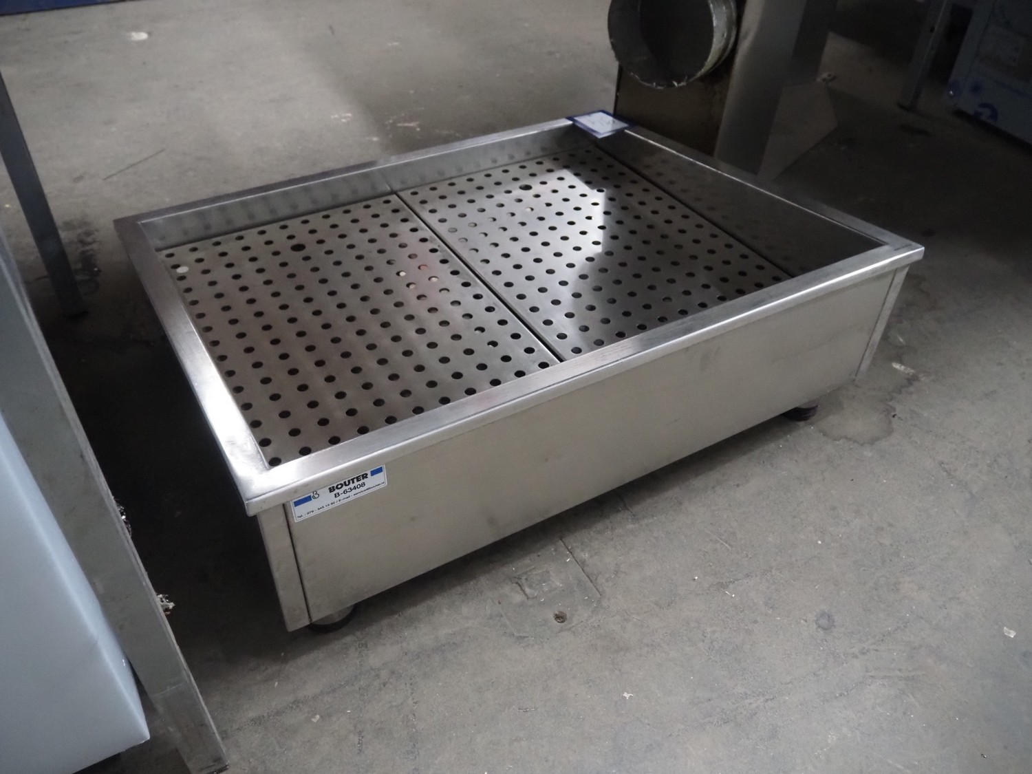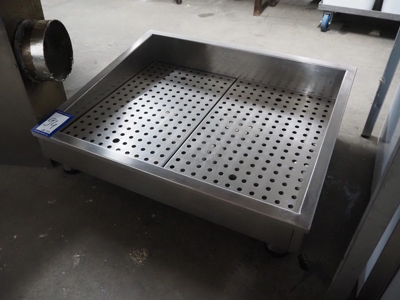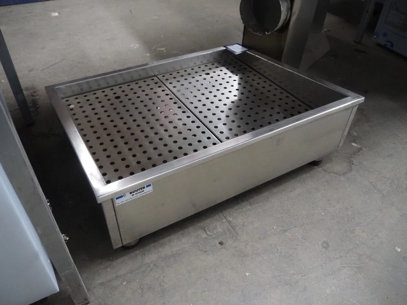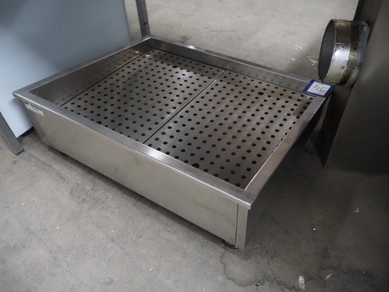 S/s tub for crushed ice, inside dimensions: 550 mm x 690 mm, total dimensions: 750 mm x 620 mm x 260 mm.