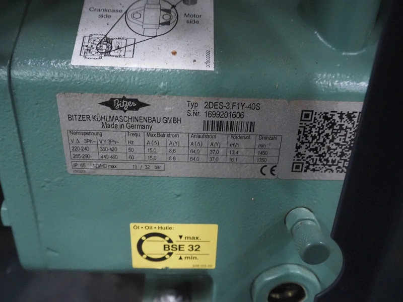 Bitzer Kühlmaschinenbau GmbH / Ecostar condensing unit with cooling compressor, type: 2DES-3.F1Y-40S, serial number: 1699201606, 220-240 V, 50 Hz, 13.4 m³/h, dimensions: 1350 mm x 700 mm x 1660 mm.