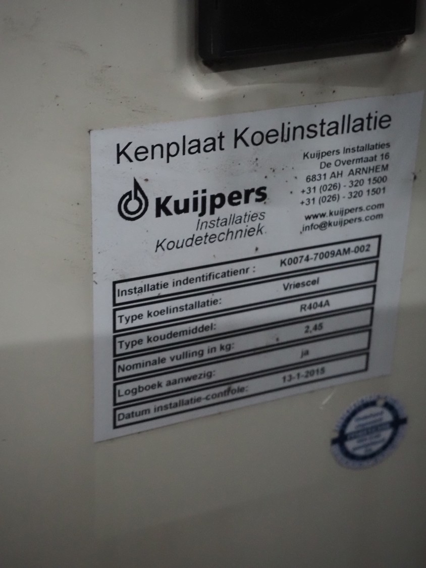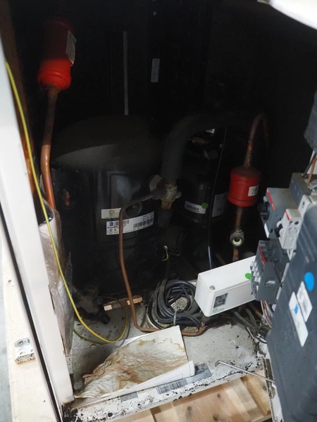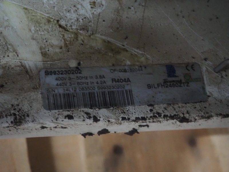 Silensys condensing unit with Lúnite Hermetique cooling compressor, type: Vriescel, year of construction: 13-1-2015, refrigerant: R404A, model cooling compressor: S993230202, serial number: 14L12 083500 S993230202, 220-240 V, 50 Hz, 3.8 A, refrigerant: R404A, dimensions: 1100 mm x 560 mm x 820 mm.