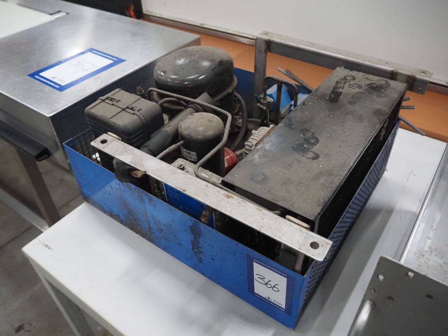 Lúnite Hermetique cooling compressor, model: CAE9460Z MHR-513-F, serial number: 00M18 135711 4388330513, 220-240 V, 50 Hz, 3.5 a, refrigerant: R404A, dimensions: 500 mm x 500 mm x 240 mm.
