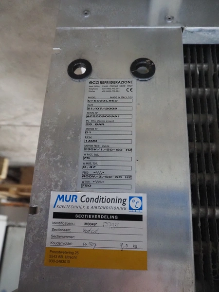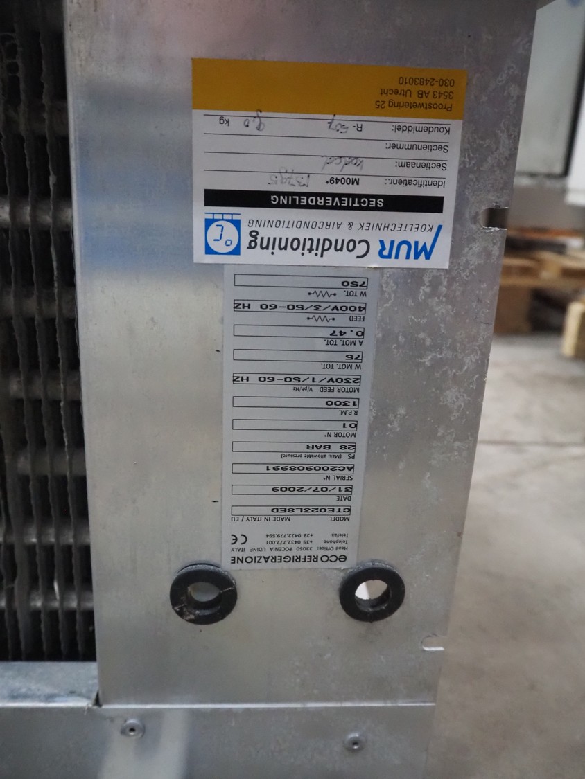 ECO Refrigerazione evaporator, model: CTE023L8ED, serial number: AC200908991, year of construction: 31/07/2009, 230 V, 1 Ph, 50-60 Hz, 750 w, 1300 rpm, max pressure: 28 bar, dimensions: 600 mm x 440 mm x 400 mm.