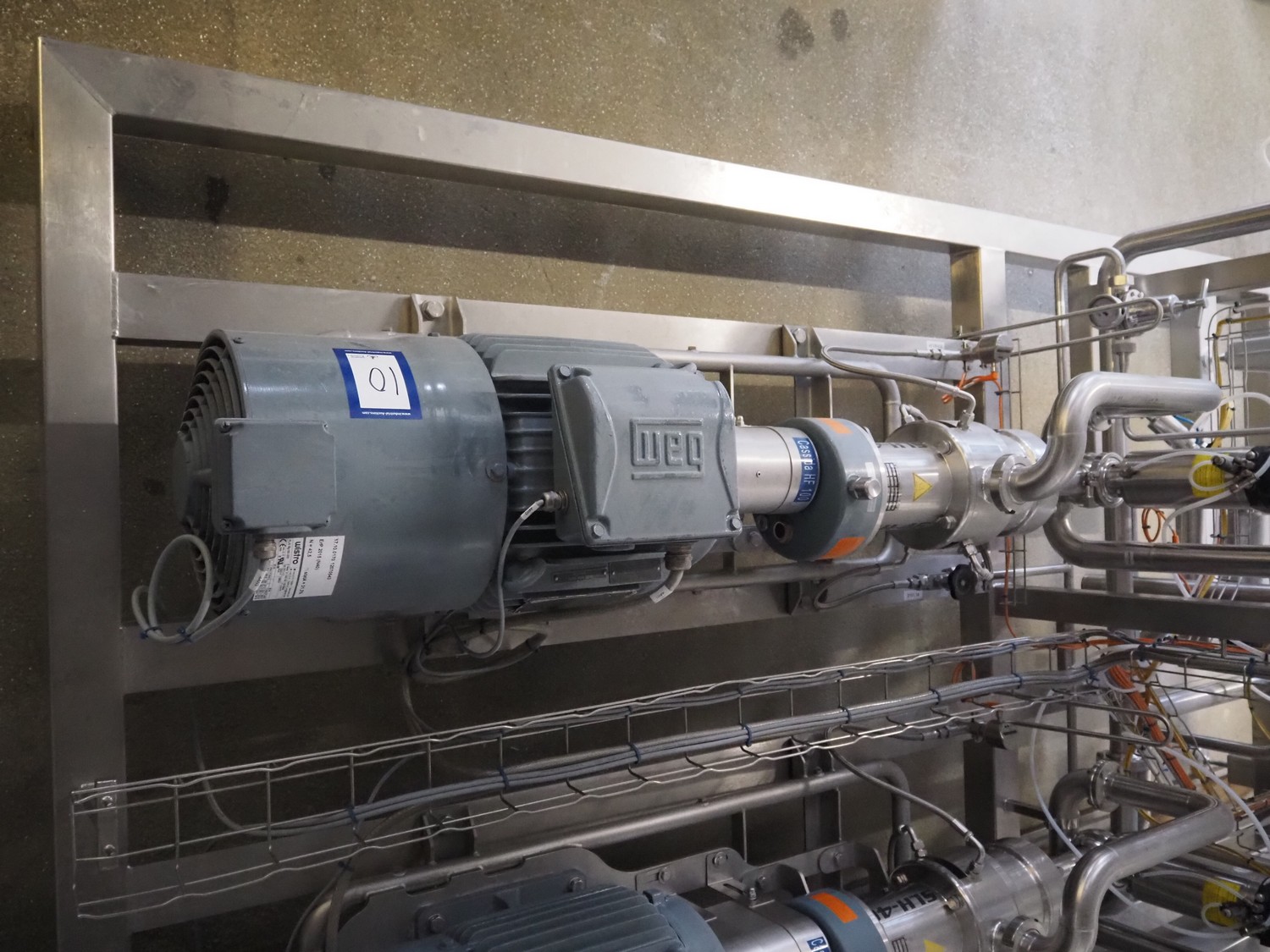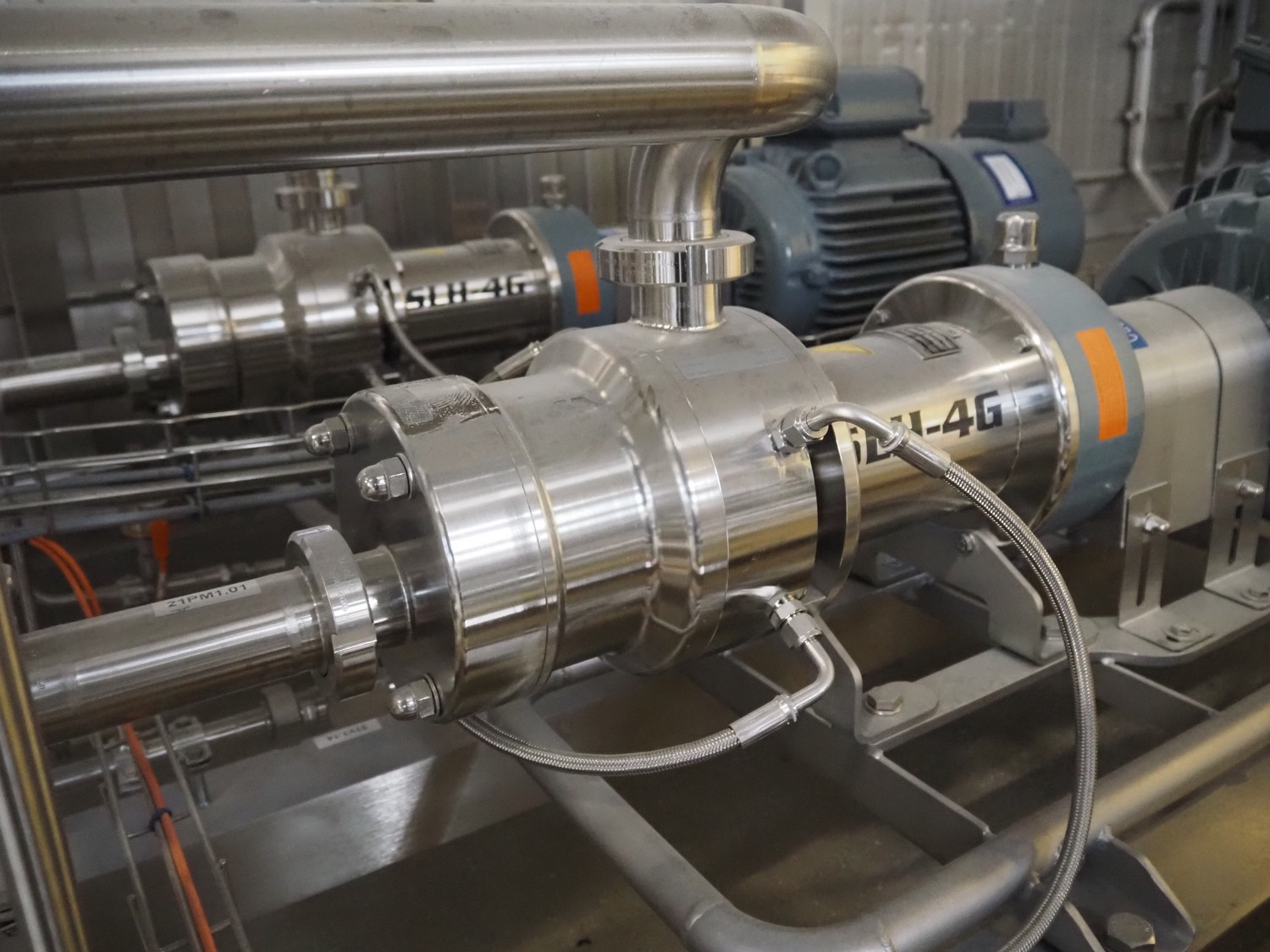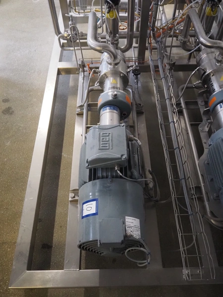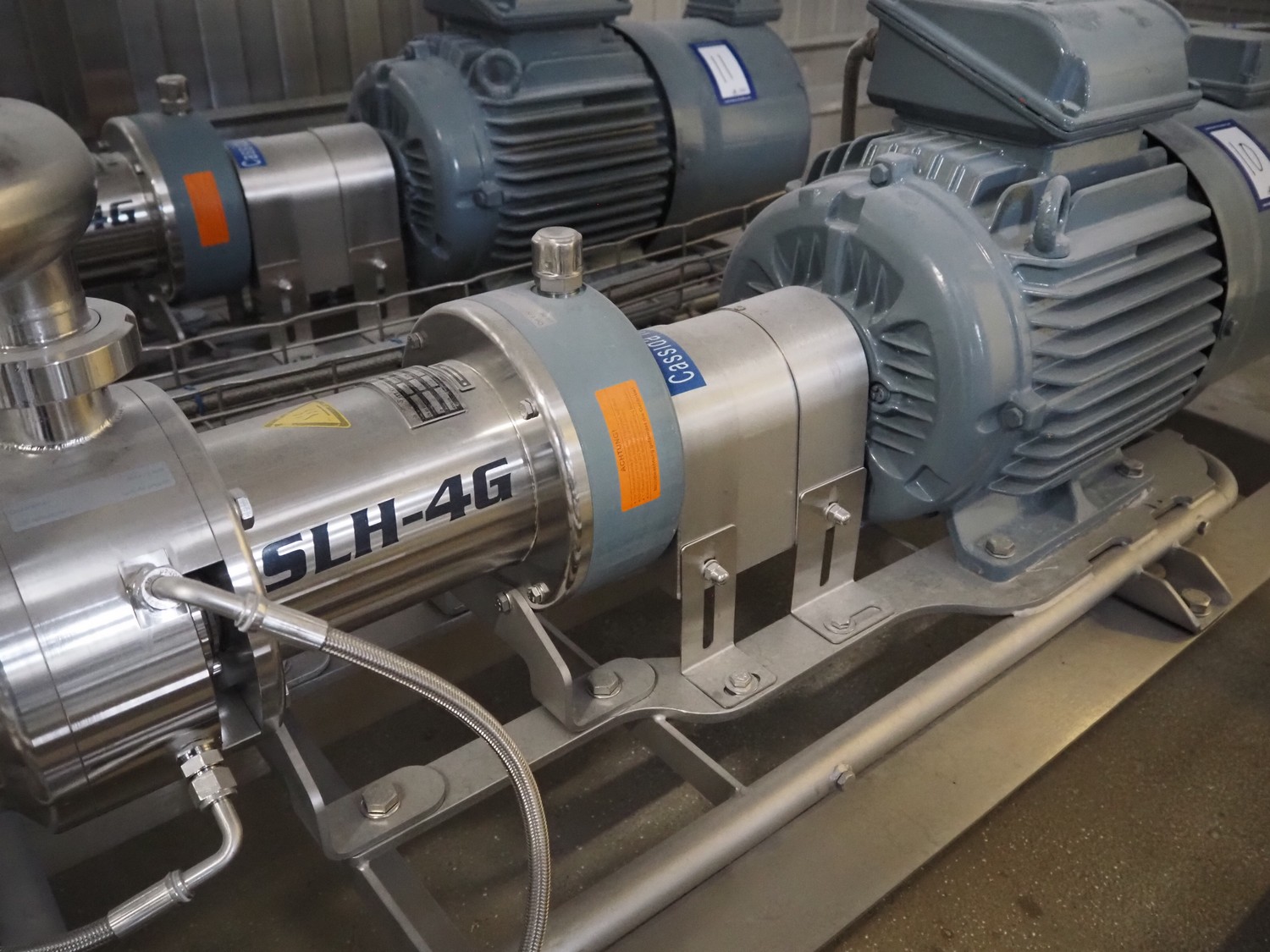 Bornemann hygienic twin screw pump, type: SLH-4G-2050, serial number: 121901, year of construction: 2018, 0.90 kW, capacity: 2 m³/h, pressure difference: 5 bar, 272 rpm, viscosity: 4000 cst, dimensions: 1700 mm x 500 mm x 500 mm.