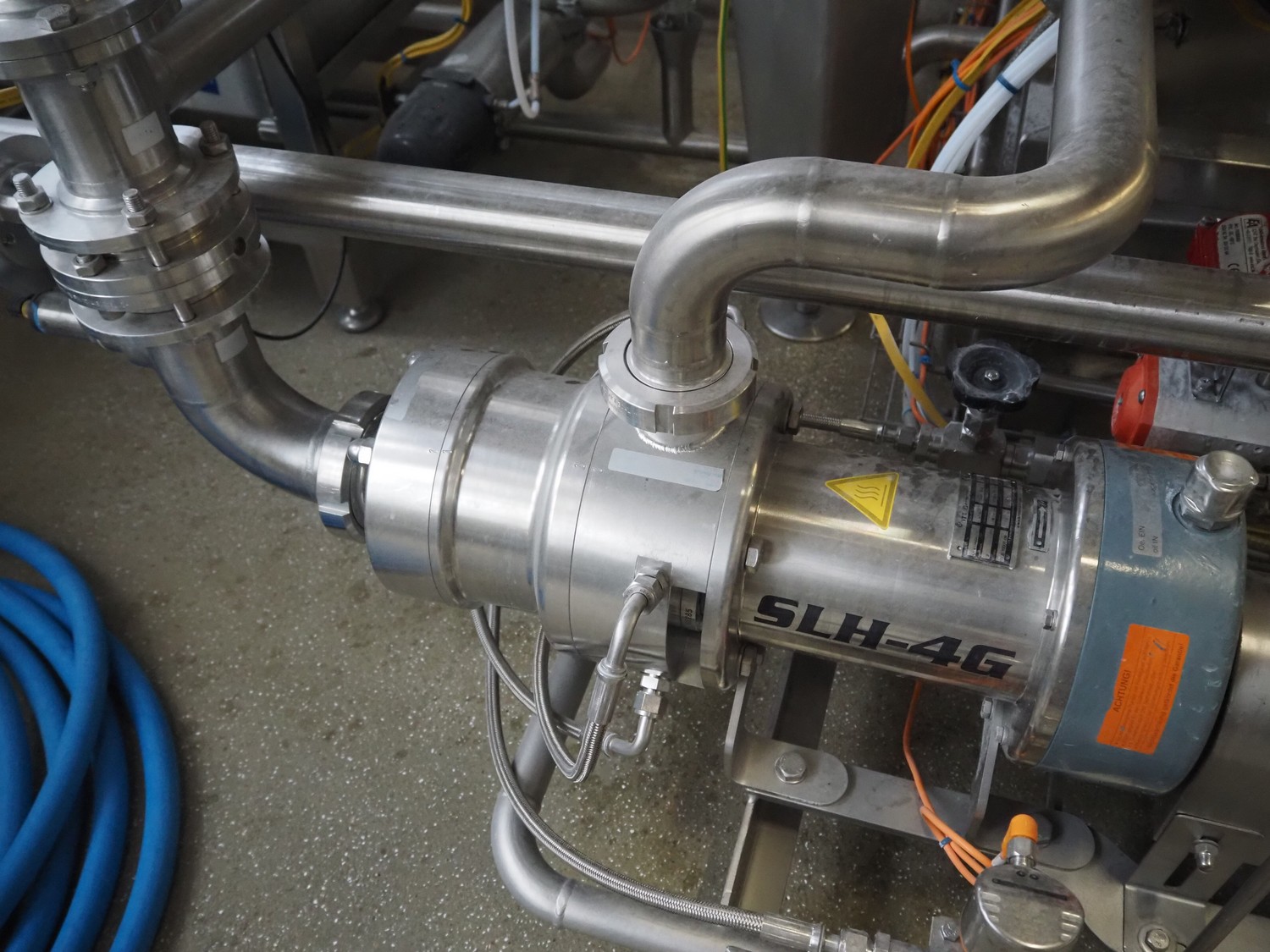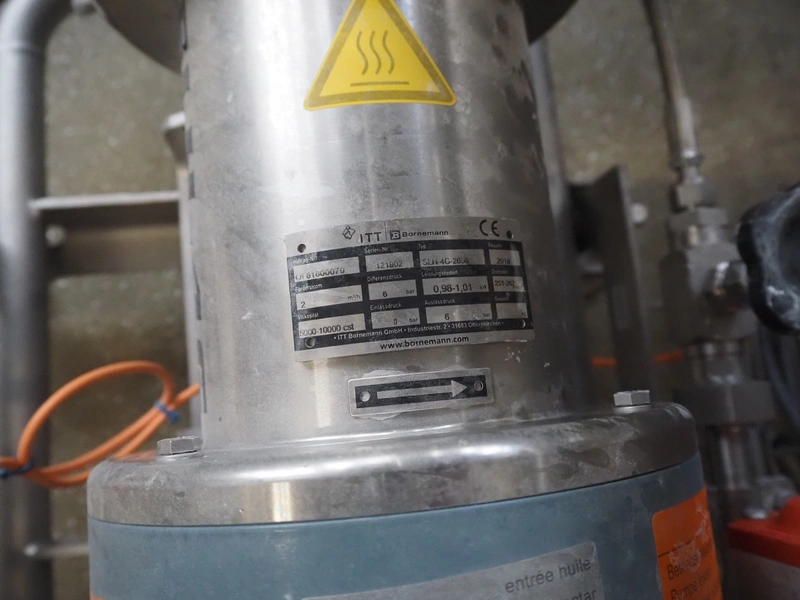 Bornemann hygienic twin screw pump, type: SLH-4G-2050, serial number: 121902, year of construction: 2018, 0.98-1.01 kW, capacity: 2 m³/h, pressure difference: 6 bar, 251-262 rpm, viscosity: 5000-10000 cst, dimensions: 1700 mm x 500 mm x 500 mm.