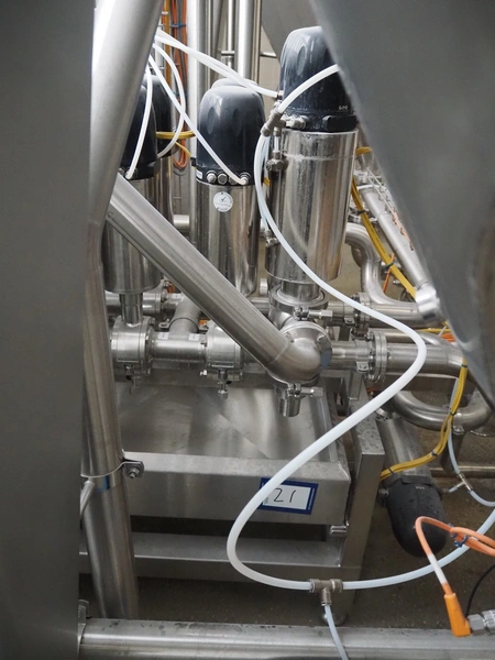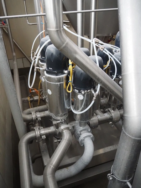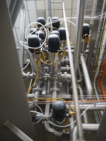 Manifold with 12 Kieselmann valves, dimensions: 900 mm x 600 mm x 1100 mm.