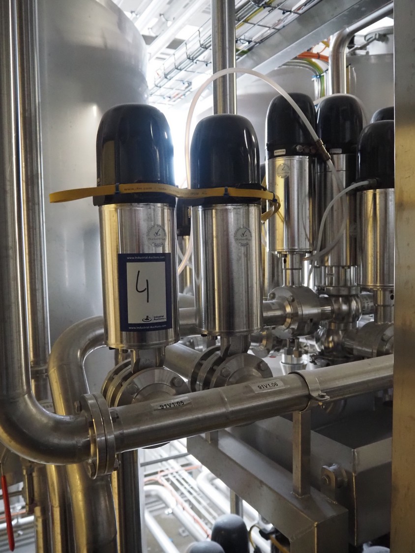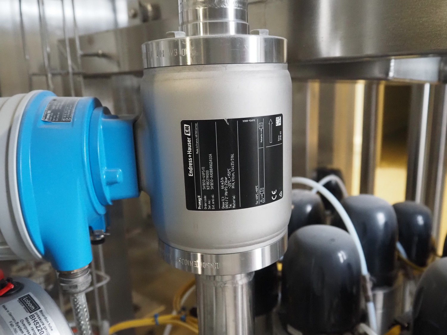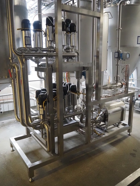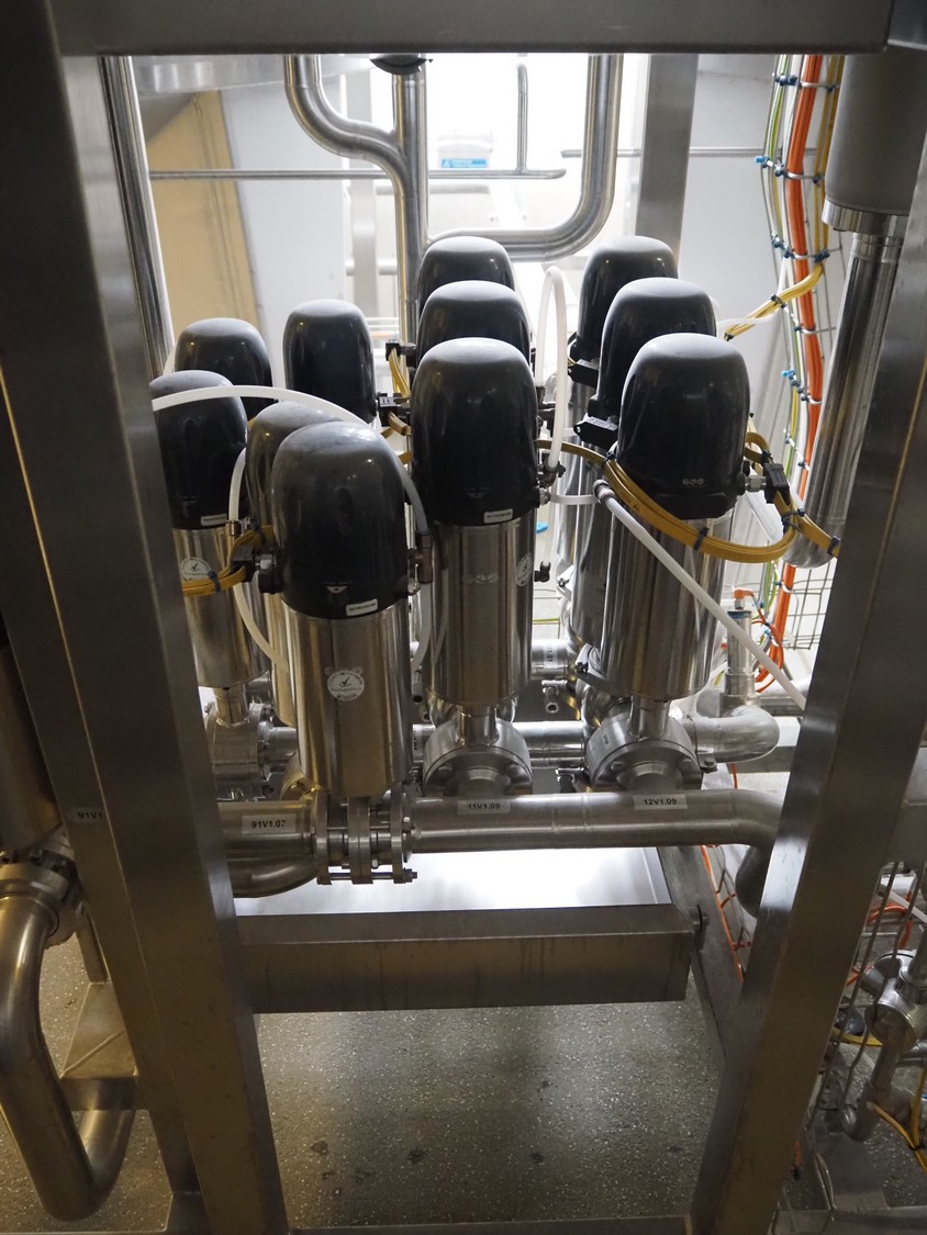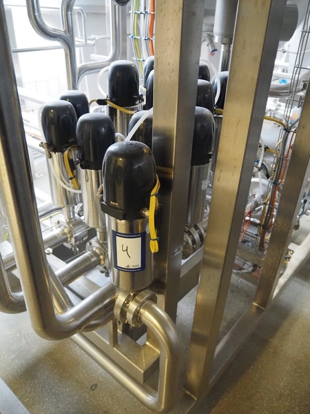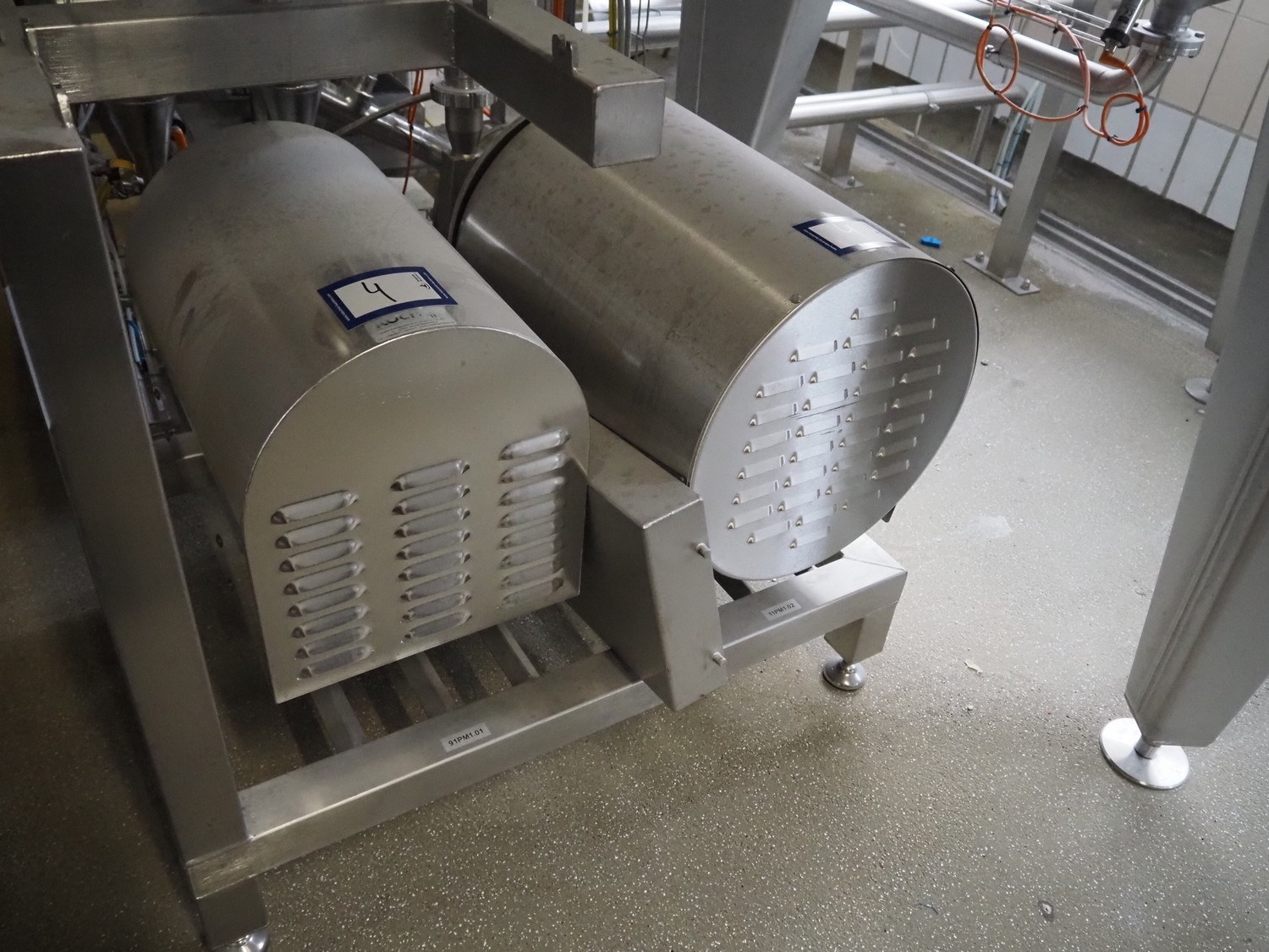 S/s skid with manifold and pumps, consisting of: 25 Kieselmann valves, Endress+Hauser flow meter, type: Promag H, serial number: N318E219000, Fristam centrifugal pump, type: 742/195 V, serial number: 0444700362, Packo centrifugal pump, type: IRP+/32-1957752, serial number: 173667, year of construction: 2018, weight: 98 kg, dimensions: 2100 mm x 900 mm x 2900 mm.