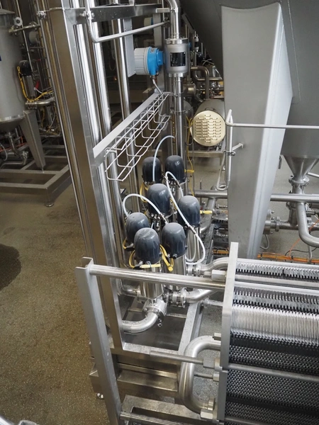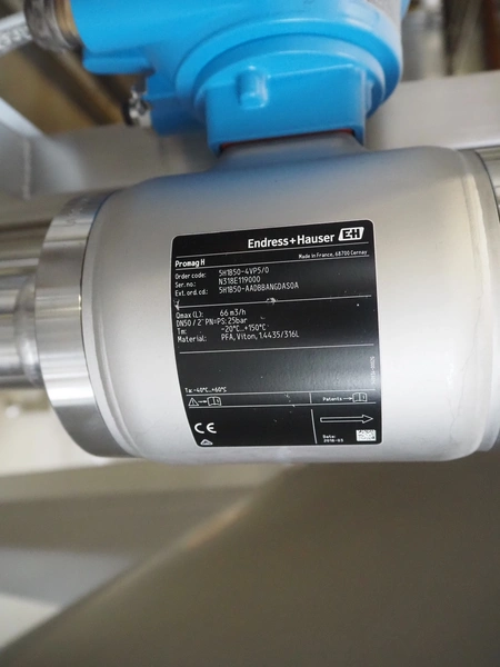 S/s skid with manifold, consisting of: 7 Kieselmann valves and Endress+Hauser flow meter, type: Promag H, serial number: N318E119000, dimensions: 1500 mm x 490 mm x 1700 mm.