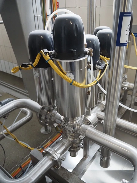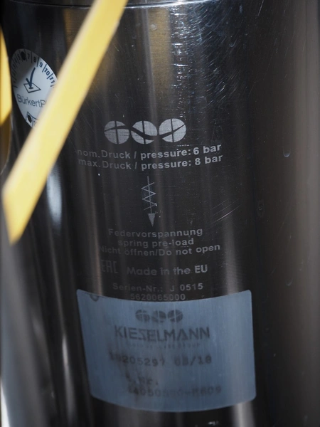 Manifold with 7 Kieselmann valves, dimensions: 900 mm x 900 mm x 1300 mm.