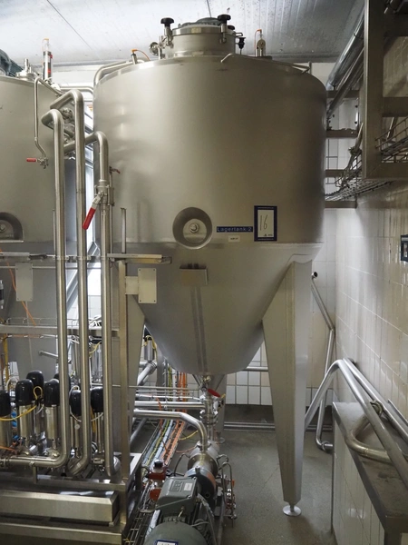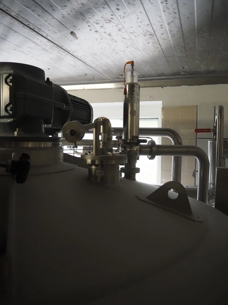 Rieger s/s double jacketed tank with mixing arm, number: 18200224-10-01, year of construction: 2018, volume: 2180 liter, dimensions: Ø 1600 mm x 3350 mm. Including 3 Kiesmann valves.