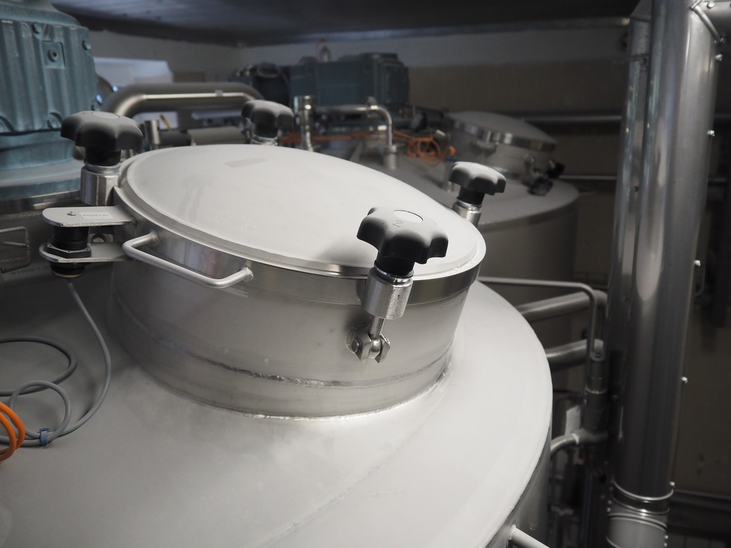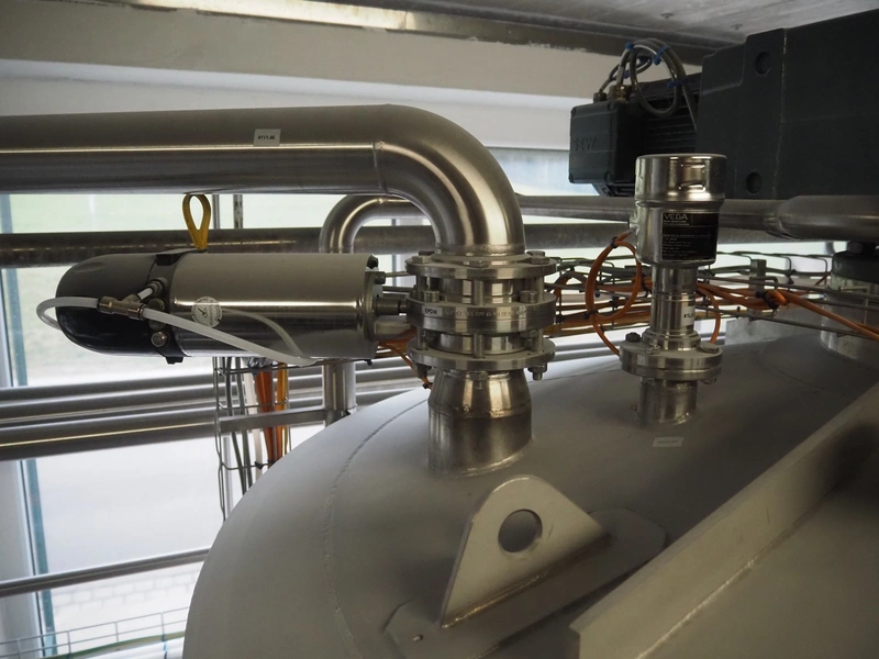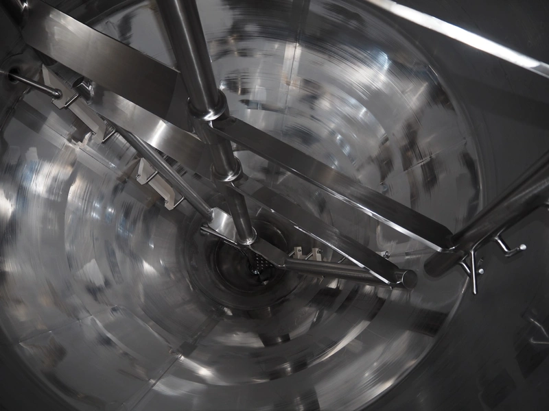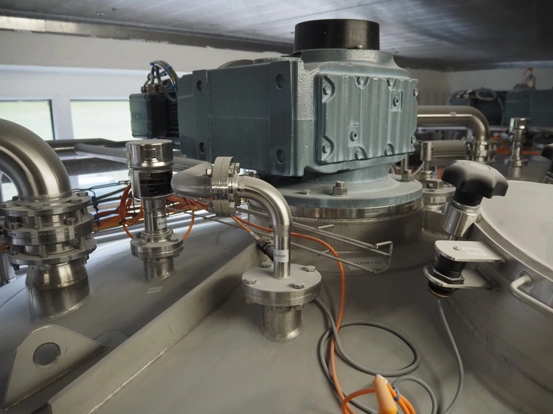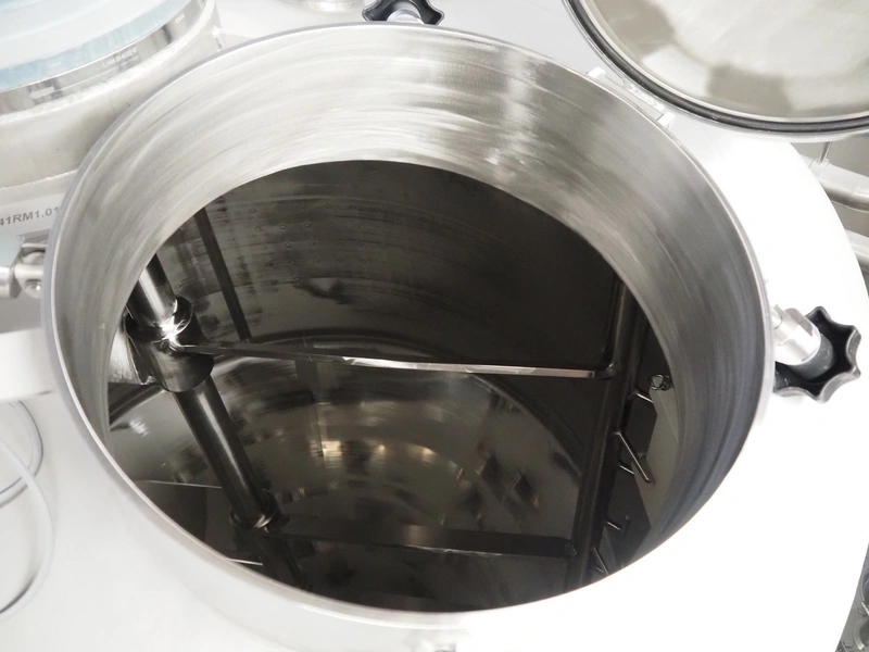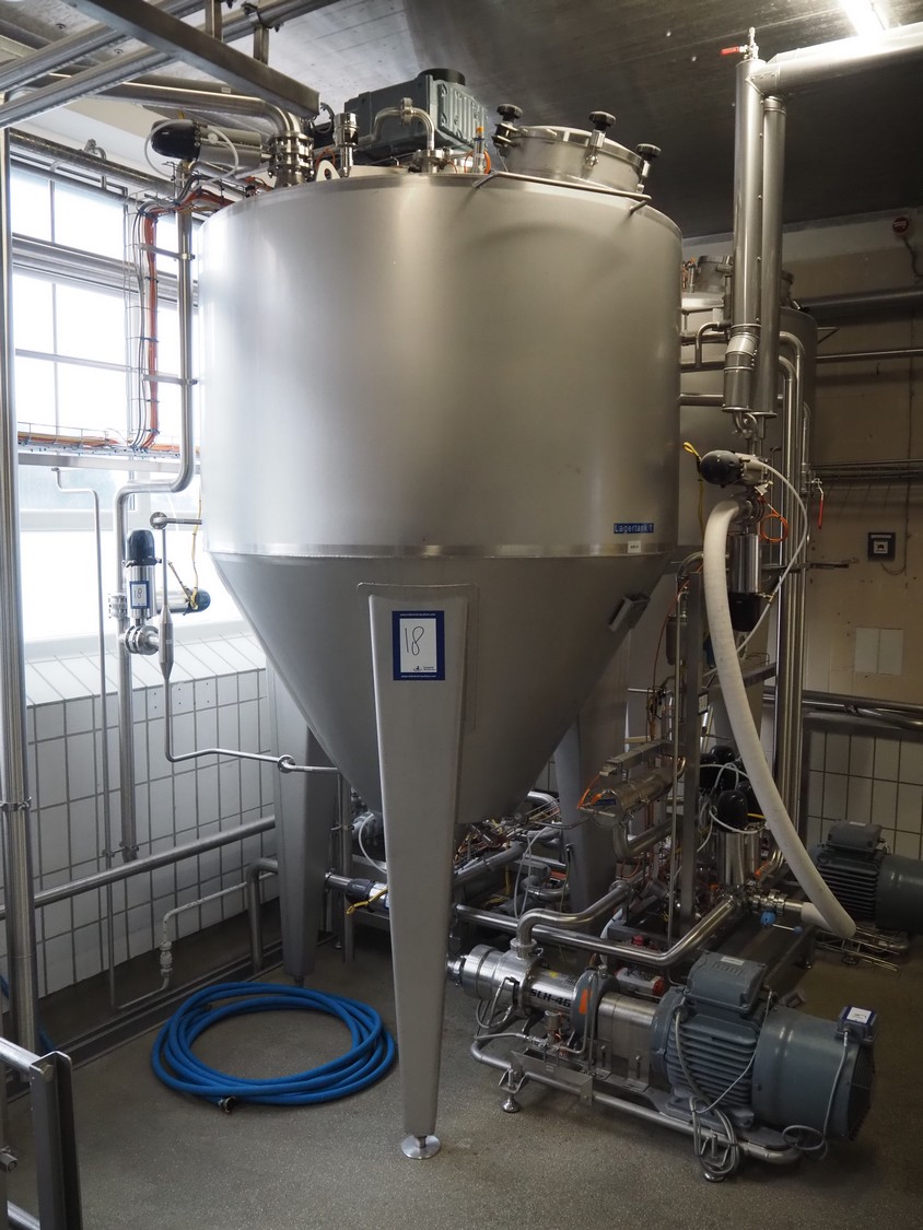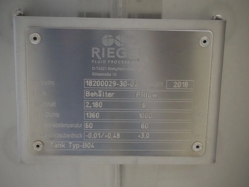 Rieger s/s double jacketed tank with mixing arm, type: B04, number: 18200029-30-02, year of construction: 2018, volume: 2180 liter, dimensions: Ø 1600 mm x 3350 mm. Including 3 Kiesmann valves.