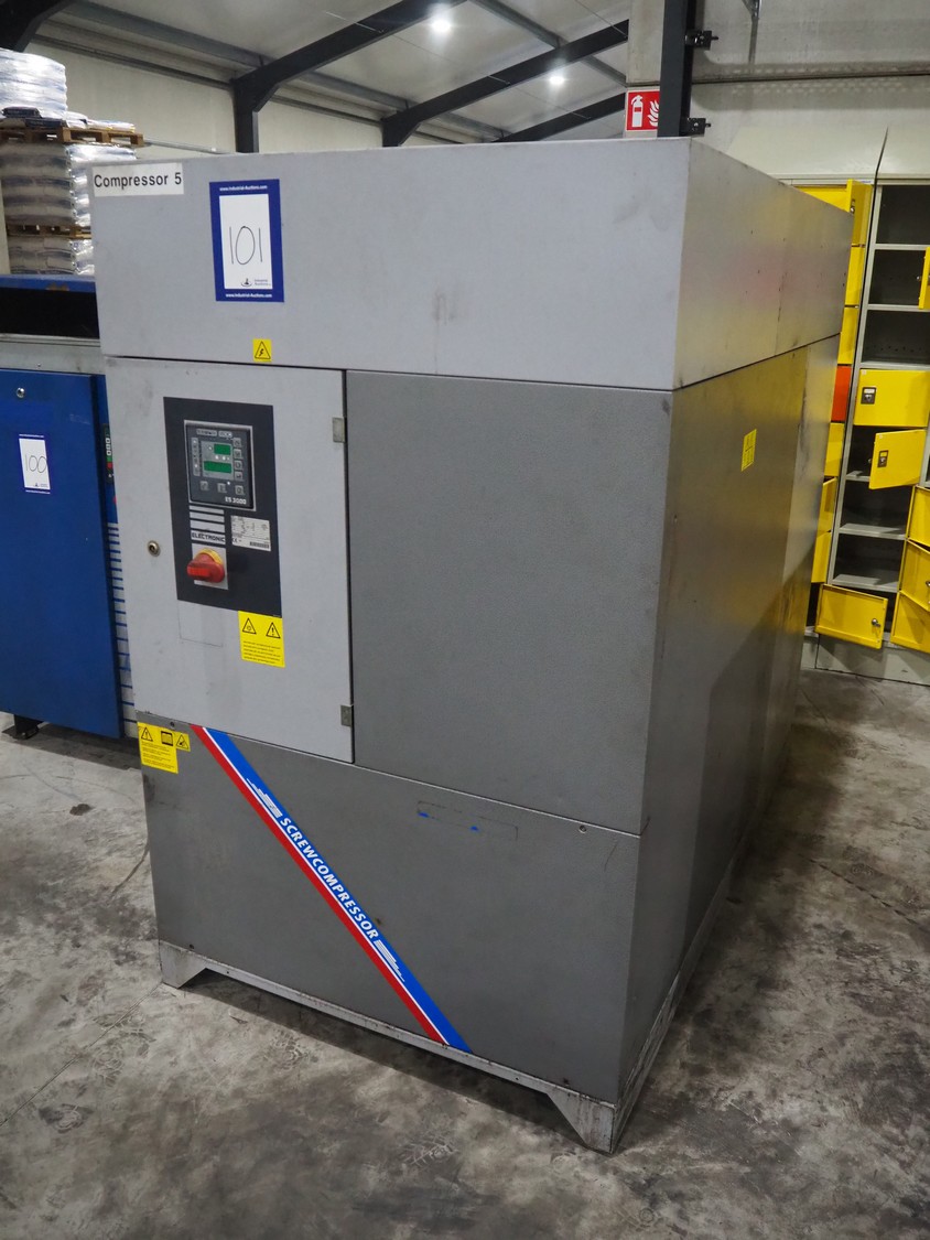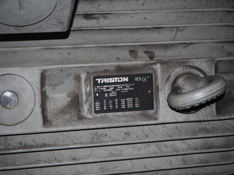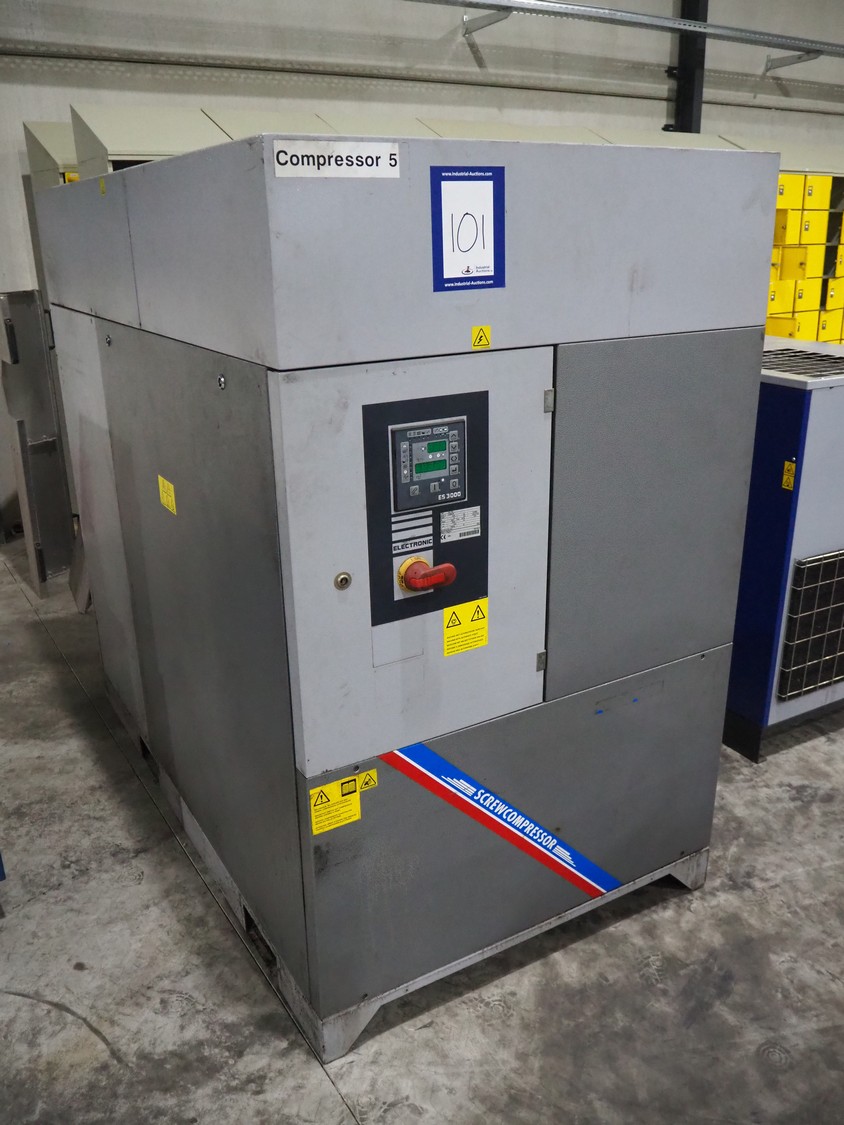 Atlas Copco air compressor, type: RCE 75/8, serial number: API200184, year of construction: 2010, 400 V, 3 Ph, 50 Hz, 75 kW, 8 bar, weight: 1388 kg, dimensions: 1950 mm x 1100 mm x 1800 mm.