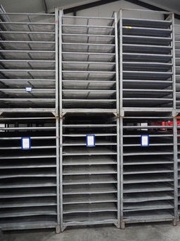 8 steel racks, 11 floors per racks, 7 racks have closed floors, 1 rack has perforated floors, floor dimensions: 1150 mm x 990 mm x 1…€ 400,000 bids15/01/2026 16:30 -