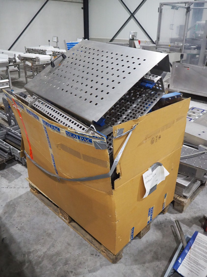 Pallet with s/s covers for Sealpac traysealer, dimensions: 1200 mm x 800 mm x 1200 mm.