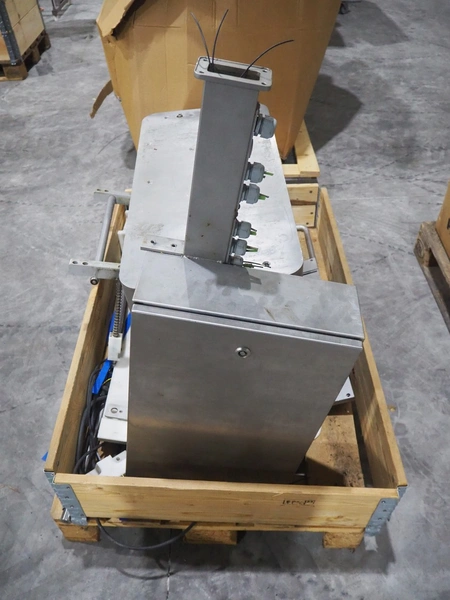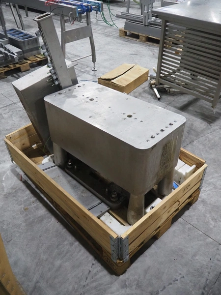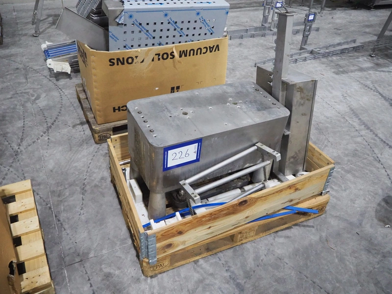Pallet with various parts for traysealer, dimensions: 1200 mm x 800 mm x 1100 mm.