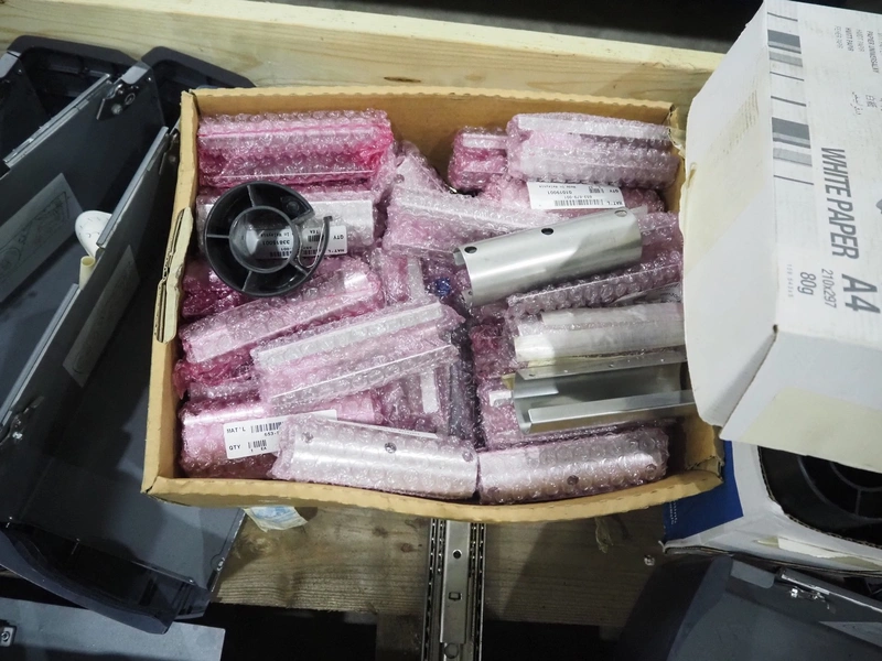Pallet box with various parts for Honeywell labeller