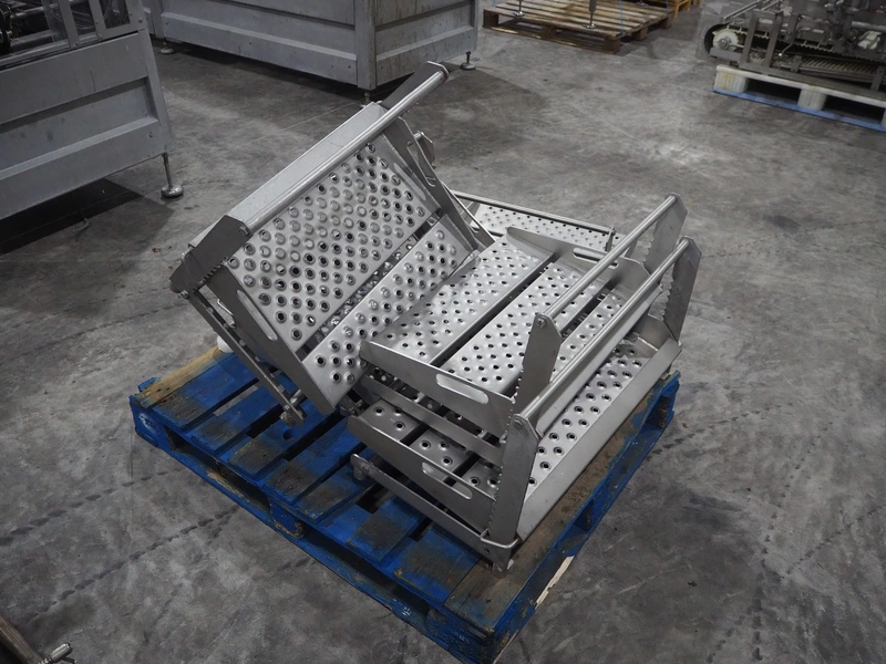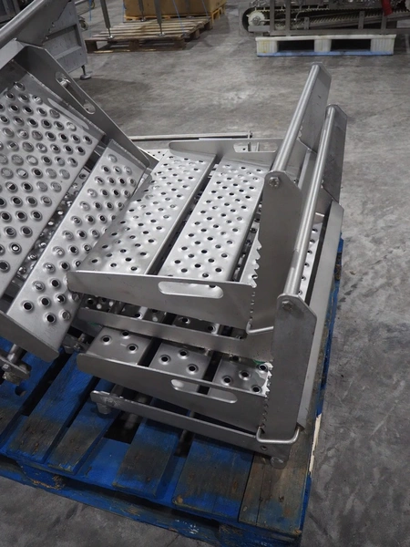 Pallet with 6 s/s ergo steps, dimensions: 750 mm x 470 mm x 430 mm.