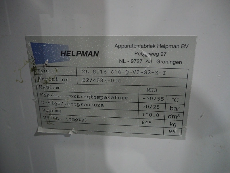 Helpman evaporator, type: ZL 8.14-416-Q-V2-G2-Z-I, serial number: 62/4083-001, year of construction: 1996, 2 fans, dimensions: 3100 mm x 1350 m x 1250 mm.