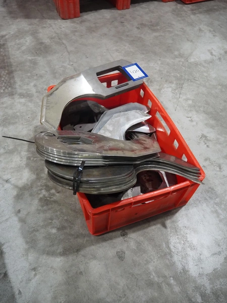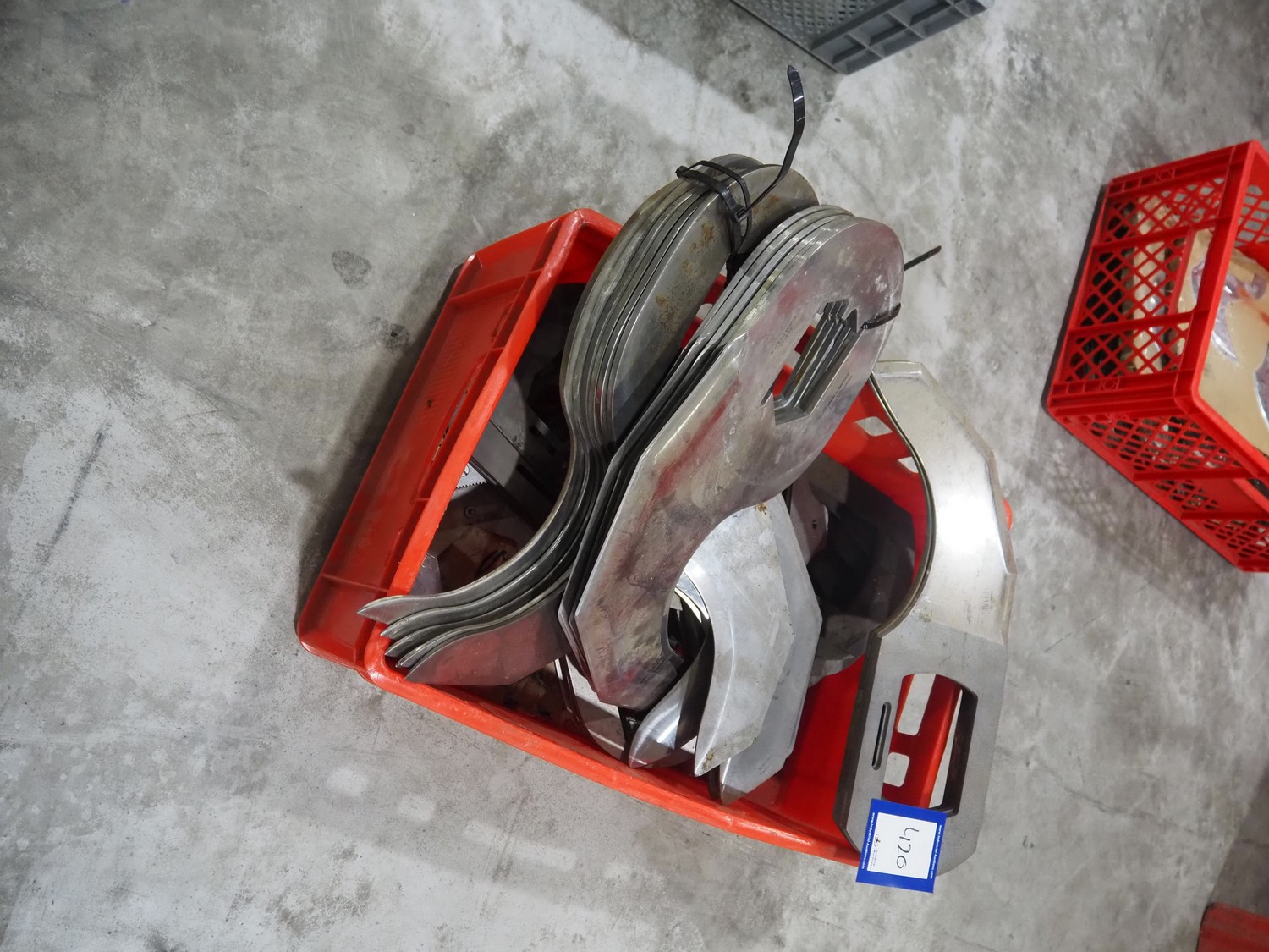Plastic crate with various knifes for cutter.
