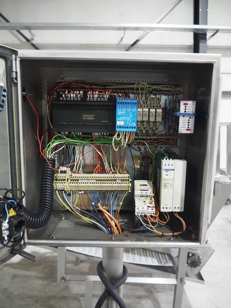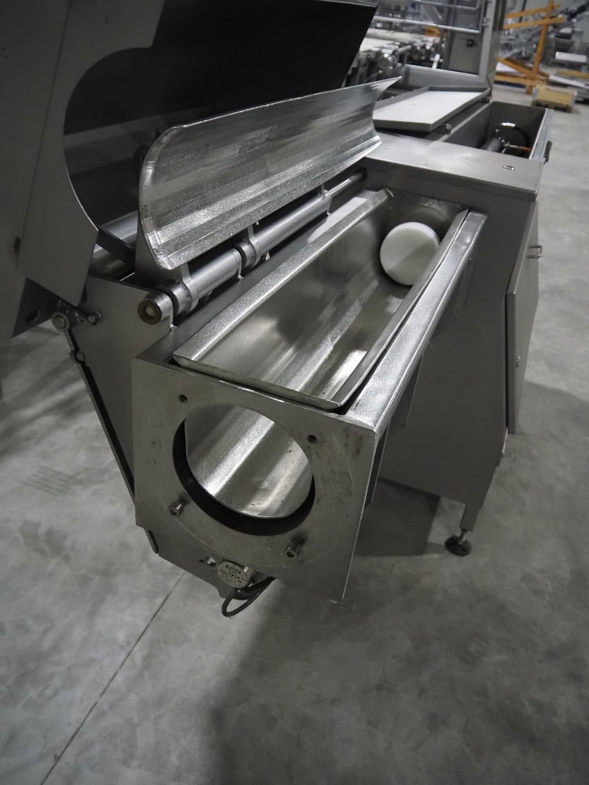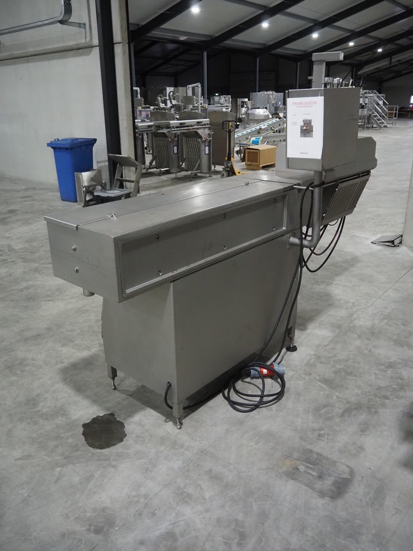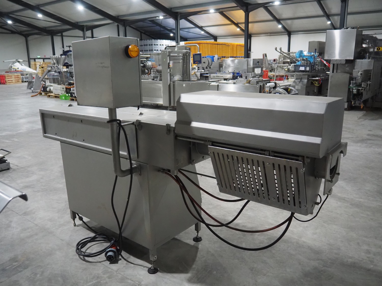 Fomaco meat press, model: FLL800-160, machine number: 10232-2005, year of construction: 2005, 400 V, 3 Ph, 16 A, dimensions chamber: Ø 135 mm x 860 mm, total dimensions: 2600 mm x 850 mm x 1680 mm.