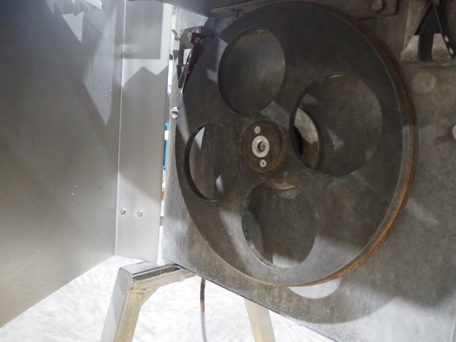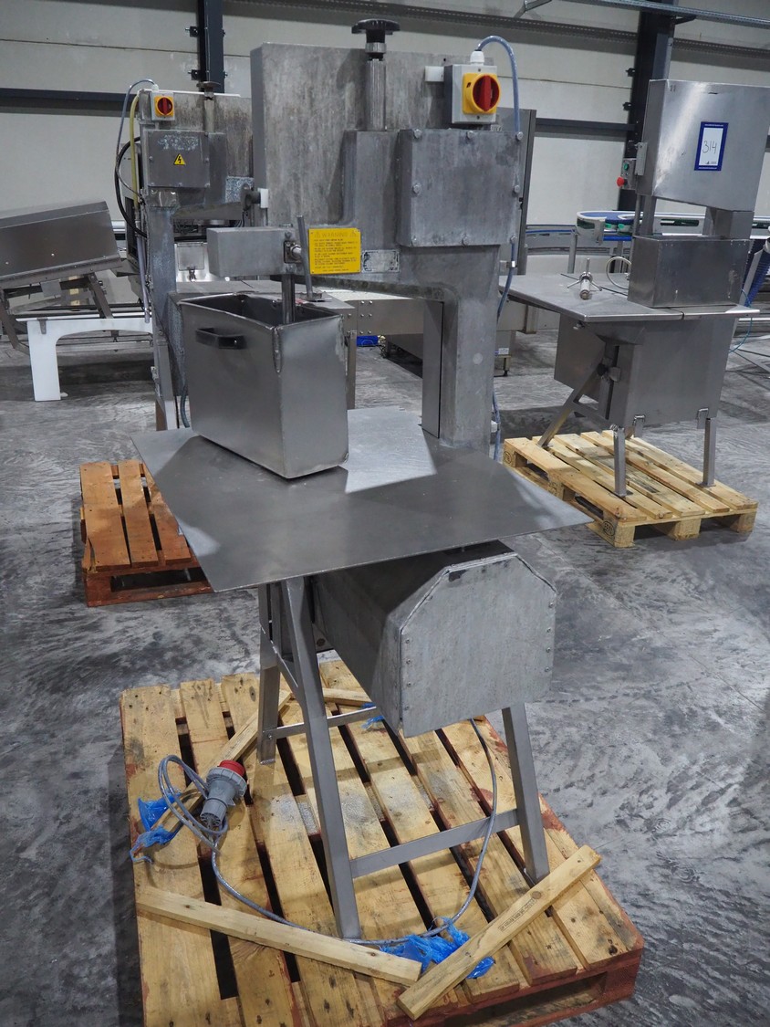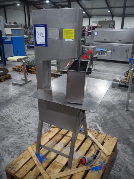 The A.E.W. Engineering band saw, type: MK8, machine: 350M, serial number: RH 100690, 415 V, 3 Ph, 3.5 A, table dimensions: 810 mm x 660 mm, total dimensions: 810 mm x 740 mm x 1700 mm. Incomplete, without saw.