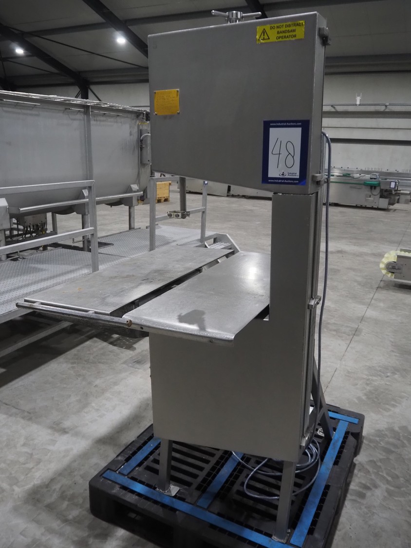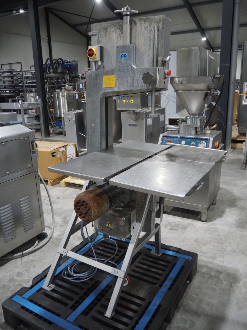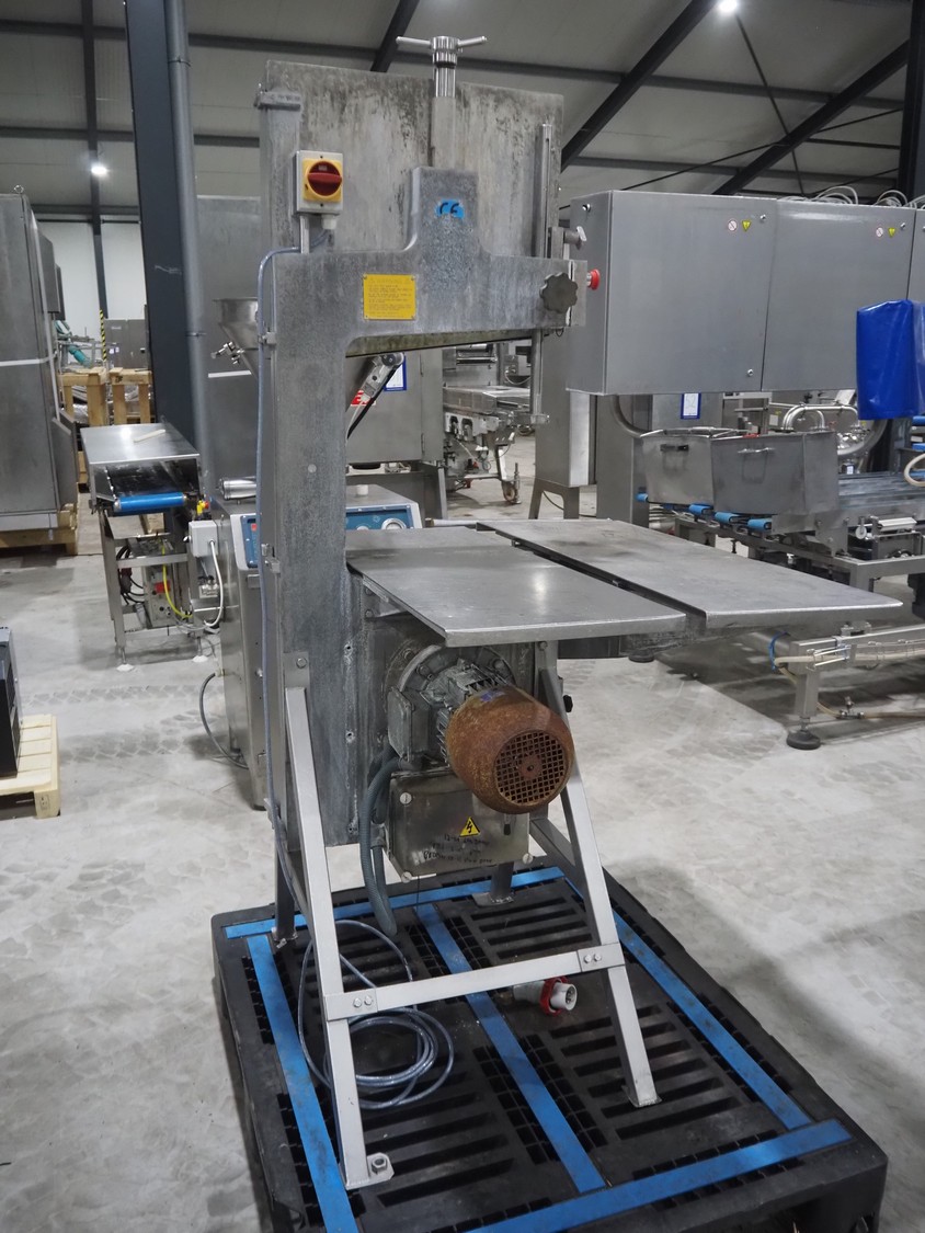 Bandsaw, dimensions saw table: 1050 mm x 850 mm, total dimensions: 1050 mm x 1000 mm x 1900 mm. Incomplete, technical condition unknown.