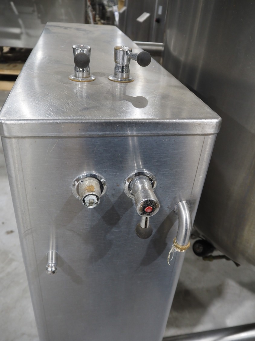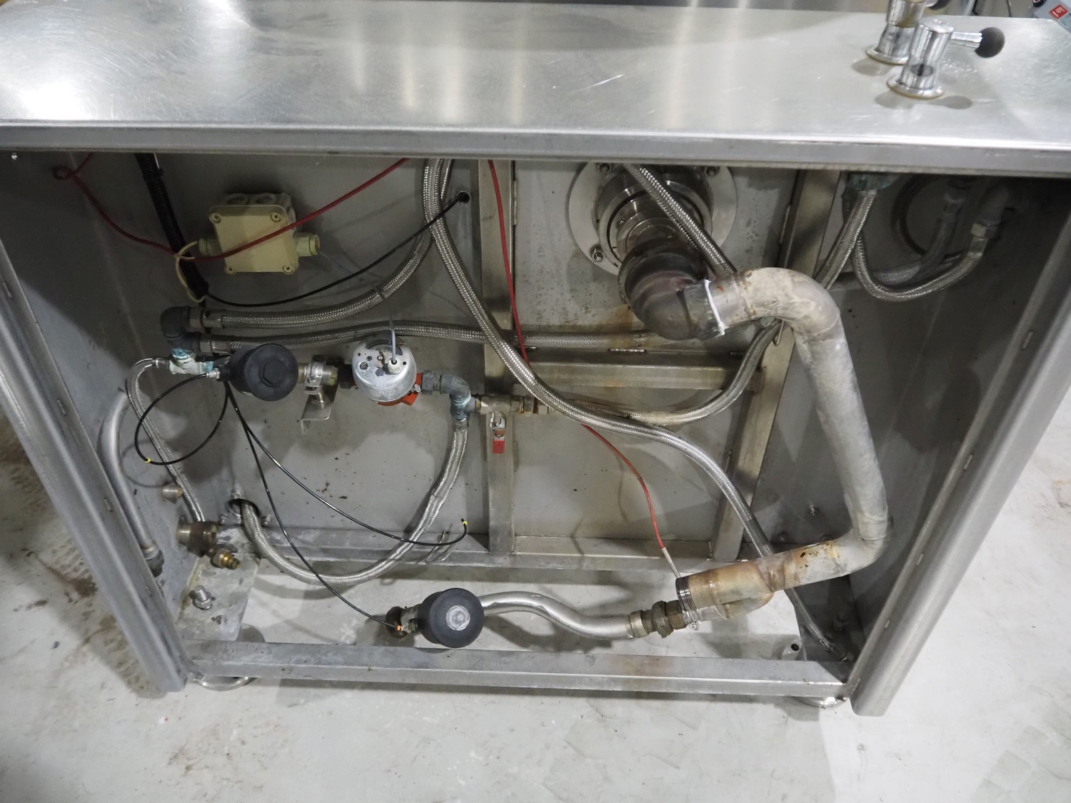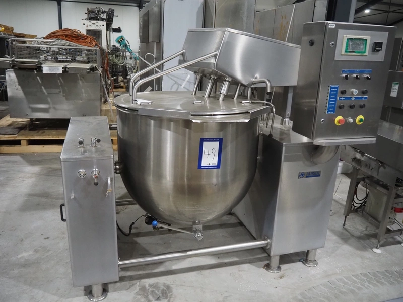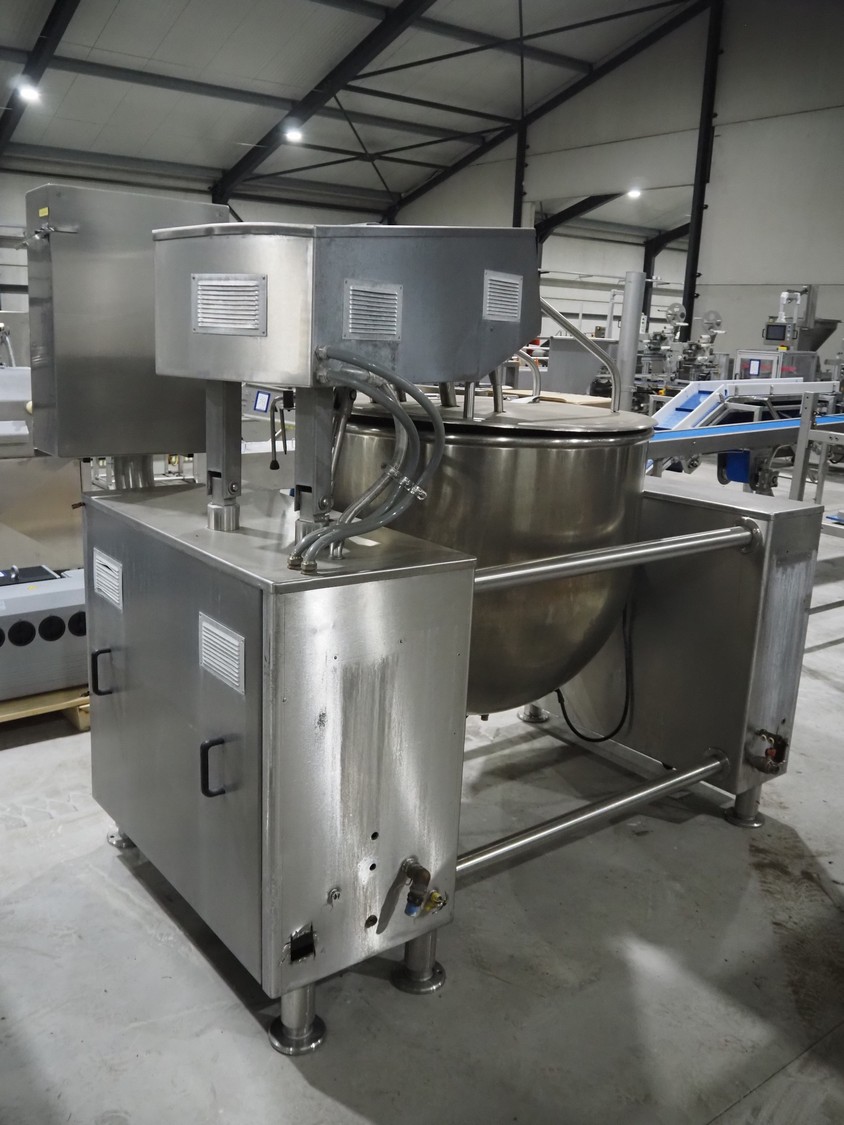 HP. Auriol cooking vessel with mixing arm and scrapers, number: 2578 B, year of construction: 07/1999, 380 V, 50 Hz, volume: 300 liter, dimensions: 1950 mm x 1400 mm x 1870 mm. Control panel broken