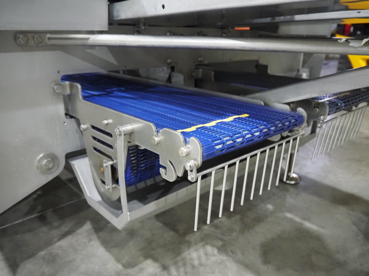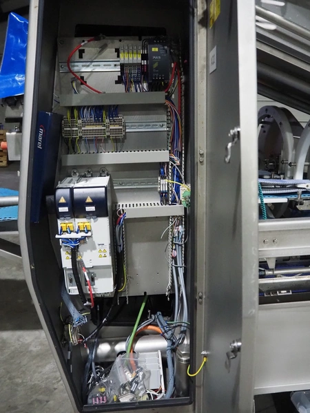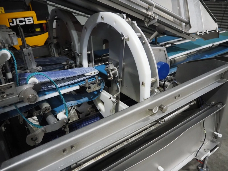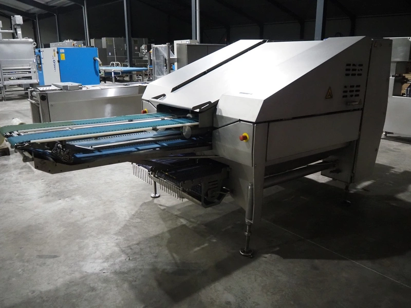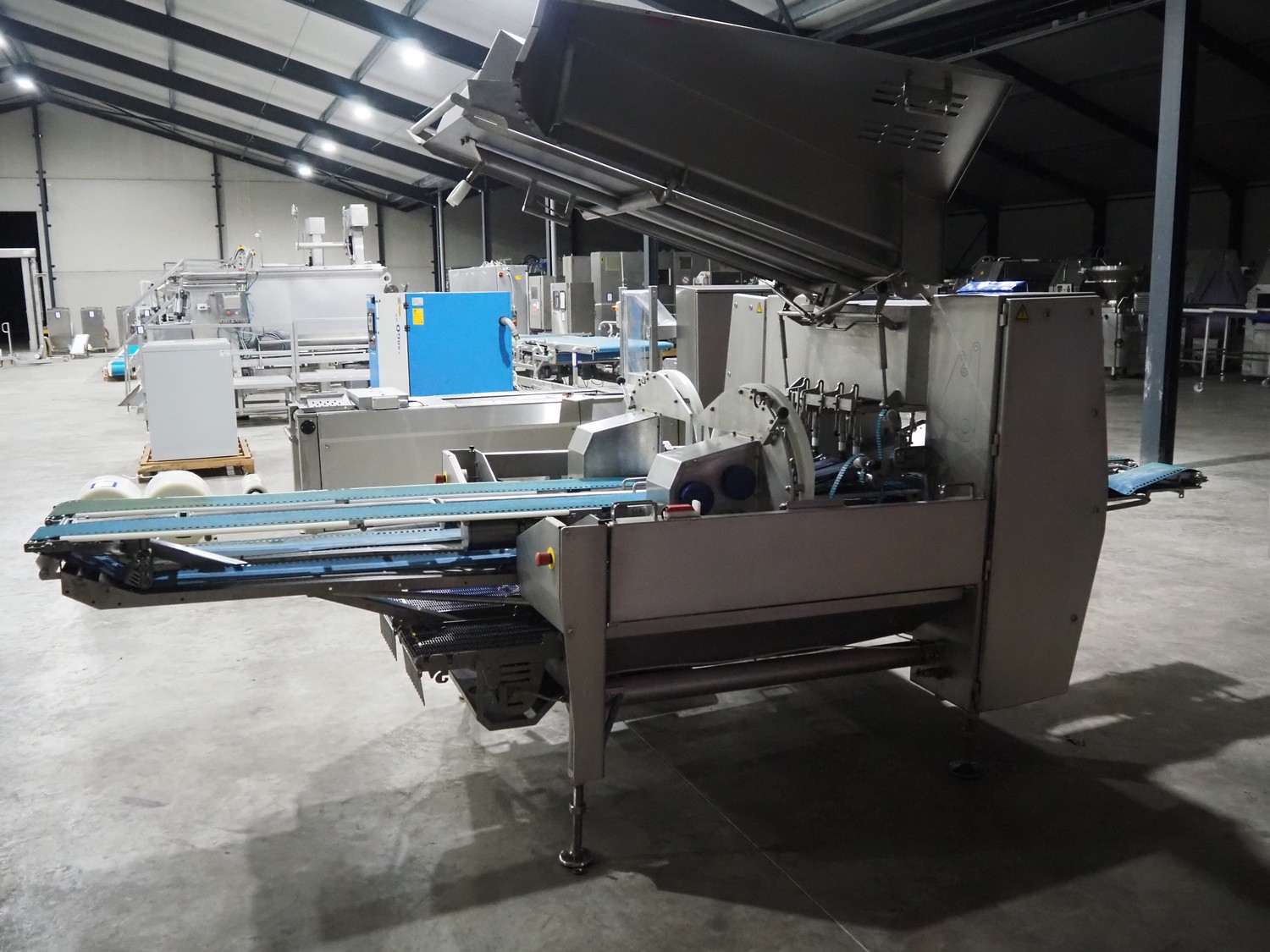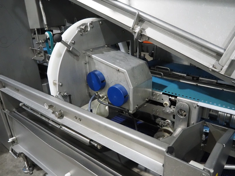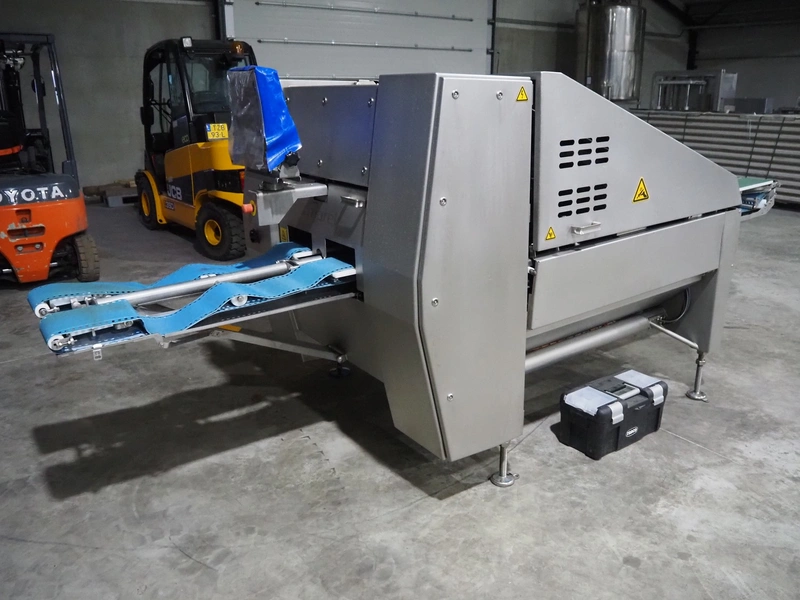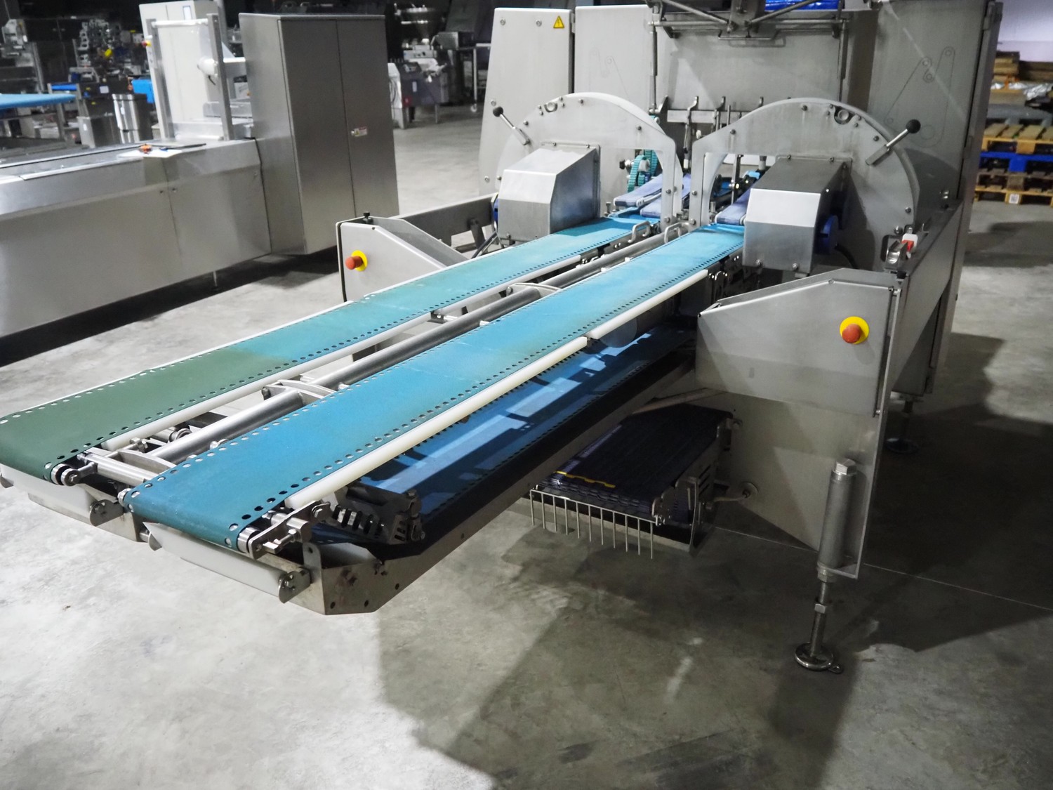Marel Portion cutter, type: LR0325, model: I-Cut122, serial number: 10431550, year of construction: 2019, 380/480 V, 3 Ph, 50/60 Hz, 1 A, plastic belt, belt width: (2x) 200 mm, total dimenions: 4350 mm x 1520 mm x 1600 mm. Incomplete, technical condition unknown.
