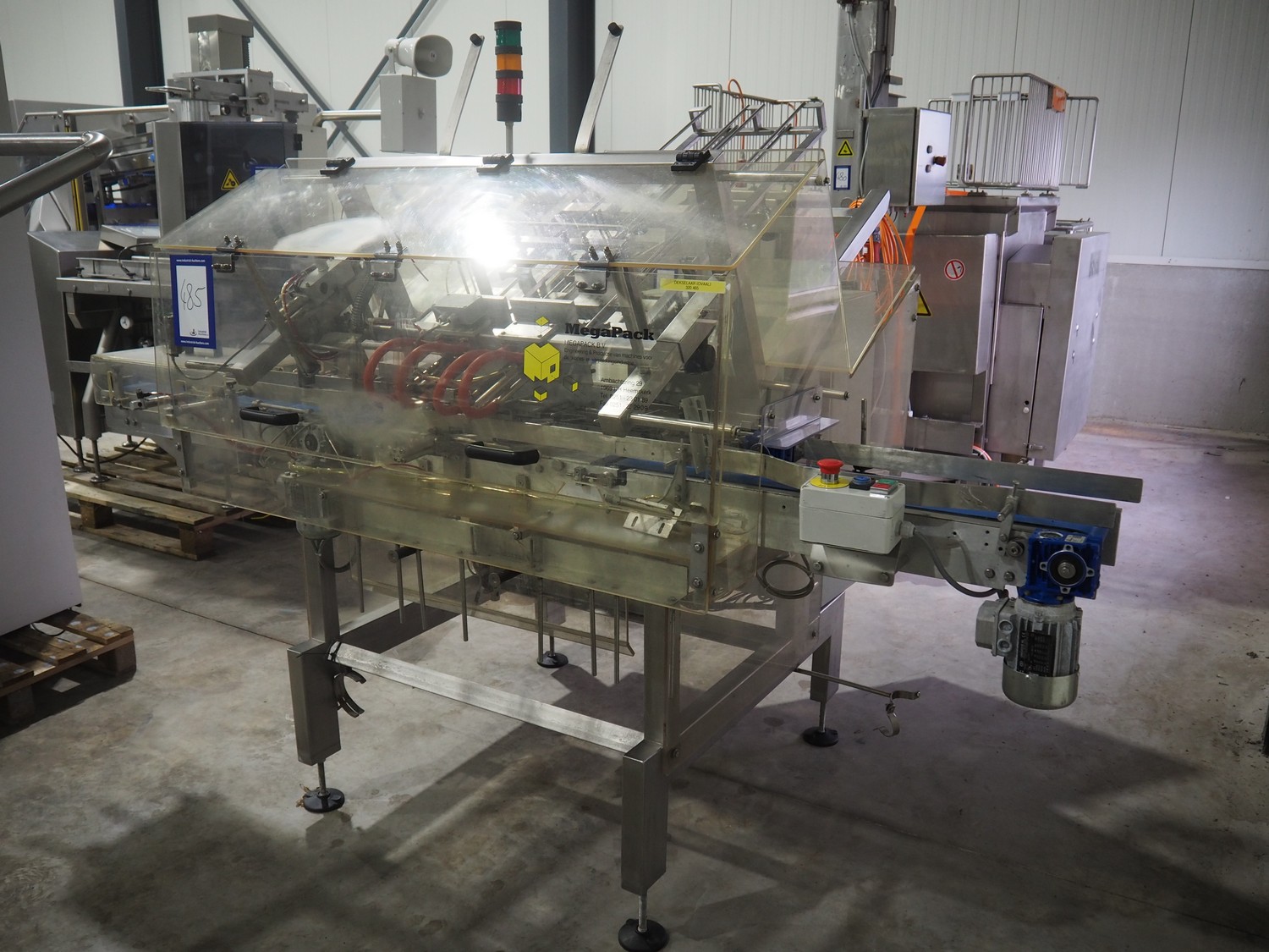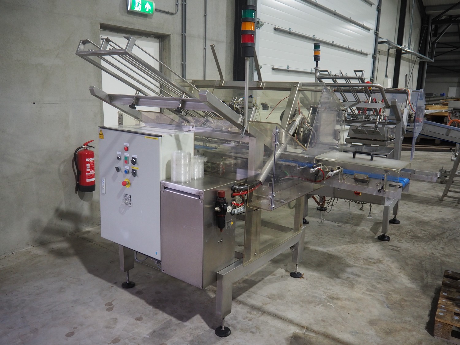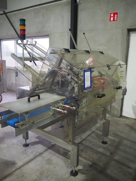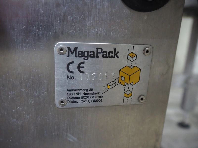 MegaPack denester, number: 107027, dimensions trays: (2x) 192 mm x 65 mm, dimensions mould: (2x) ø 110 mm, plastic belt, belt width: 175 mm, total dimensions: 1400 mm x 2650 mm x 1930 mm.