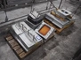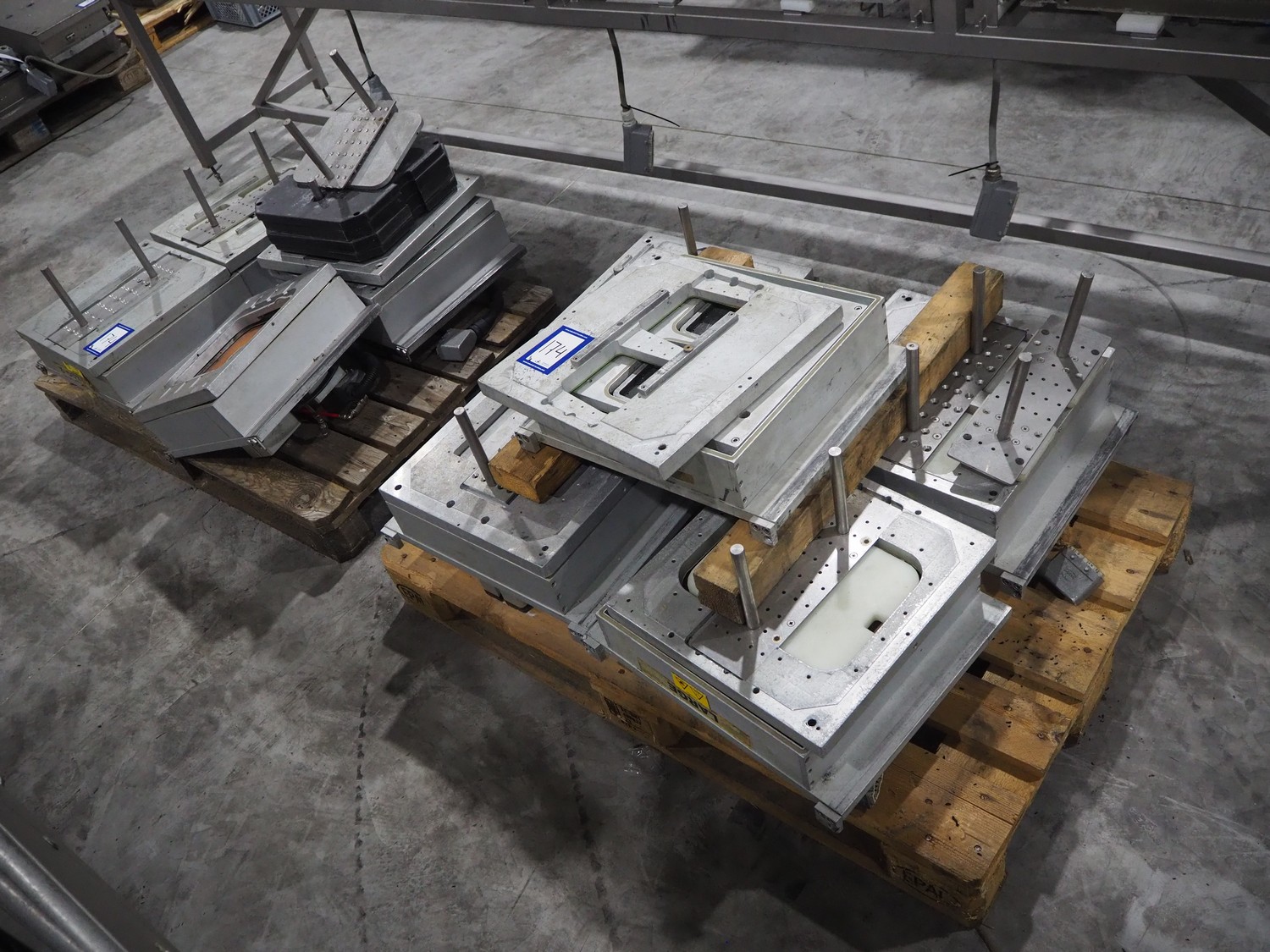2 pallets with dyes, 4 dyes, dimensions: (2x) 145 mm x 145 mm, (2x) 200 mm x 150 mm, 290 mm x 225 mm, (2x) 185 mm x 145 mm.