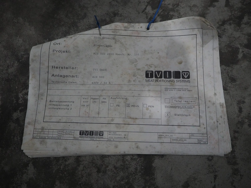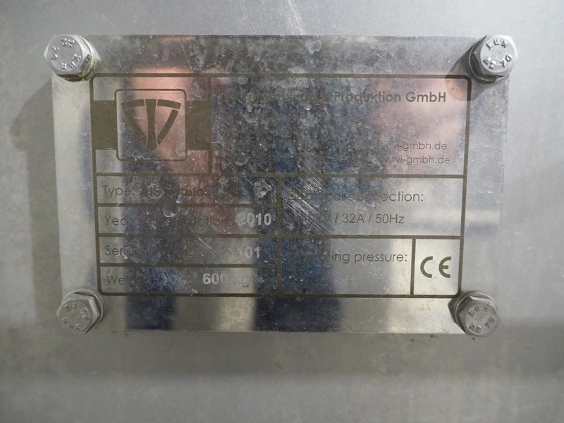 TVI Entwicklung & Produktion GmbH tray filler, type: AIS autoload 500, serial number: 101, year of construction: 2010, 400 V, 3 Ph, 50 Hz, 32 A, weight: 600 kg, maximum belt width: 300 mm, total dimensions: 2700 mm x 1200 mm x 2050 mm.