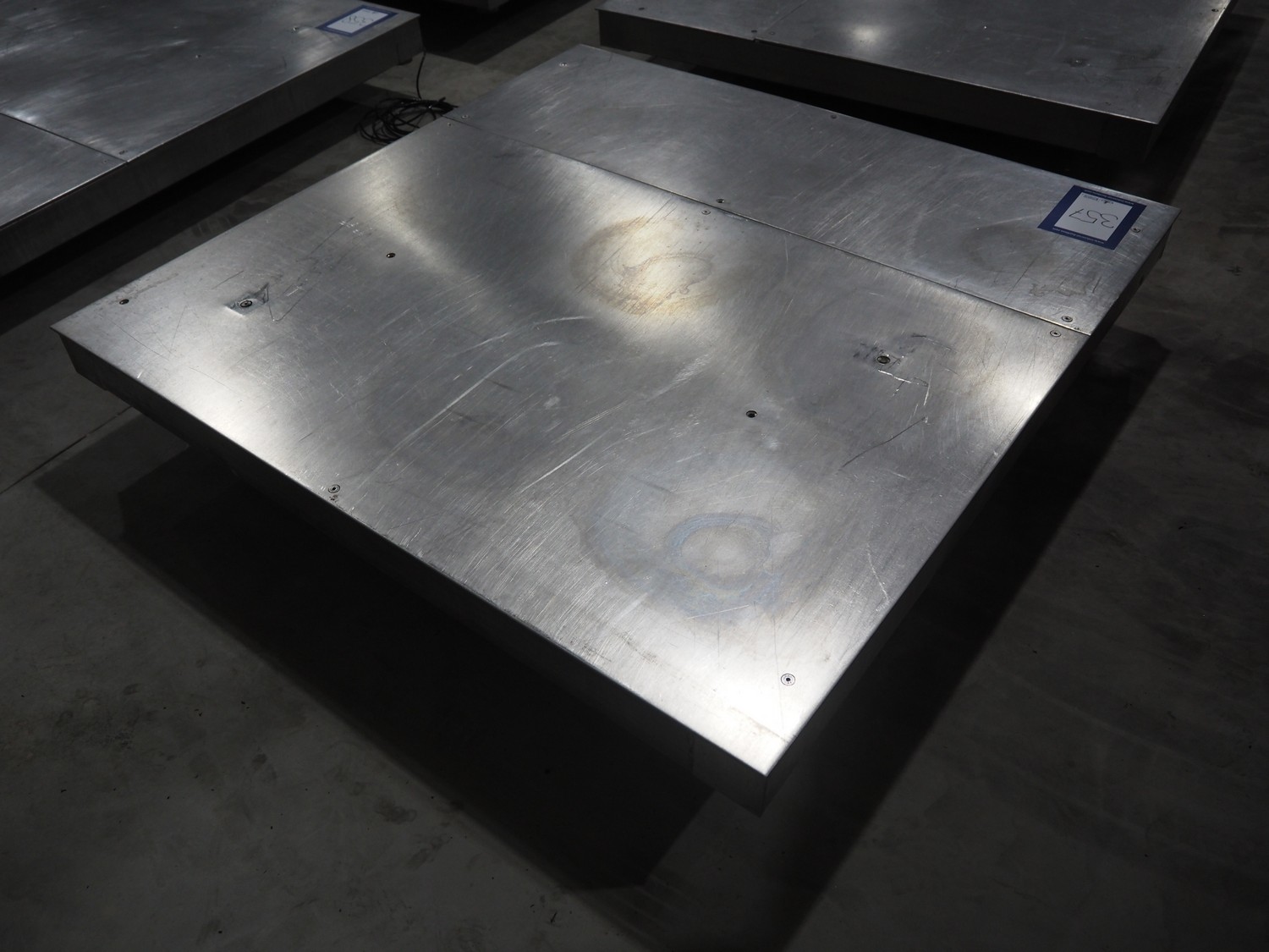 S/s floor weighing scale, dimensions: 1500 mm x 1500 mm x 105 mm. Without indicator.
