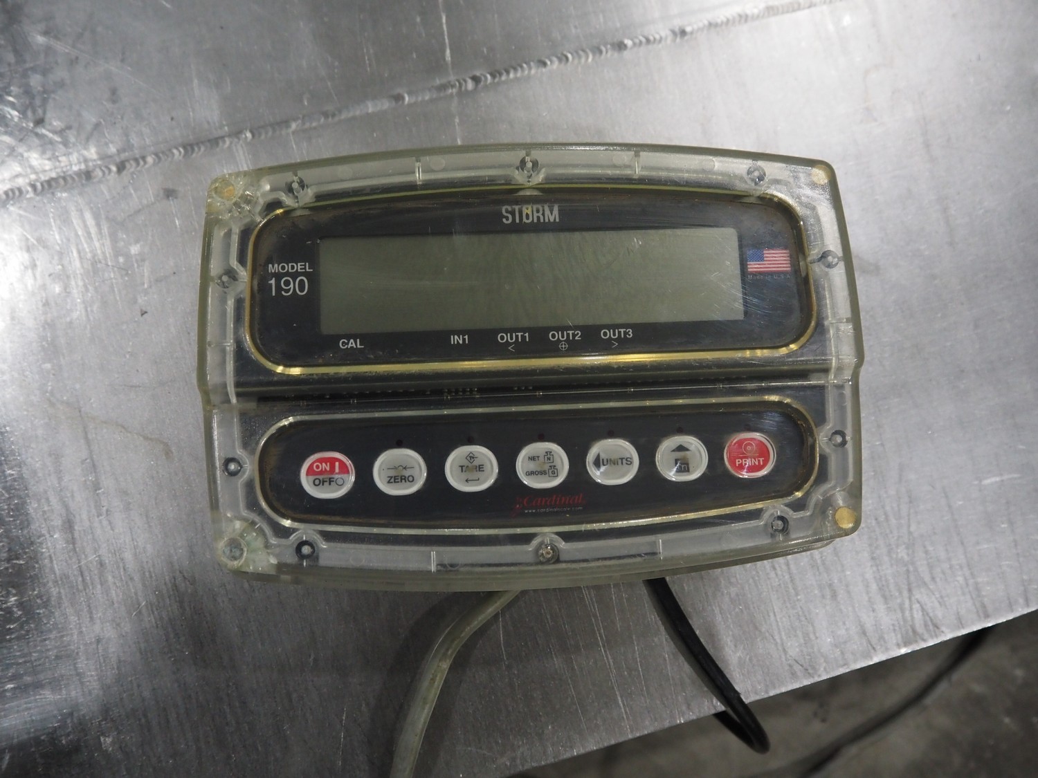 S/s floor weighing scale with Cardinal indicator, model indicator: 190, dimensions: 1850 mm x 1375 mm x 190 mm.