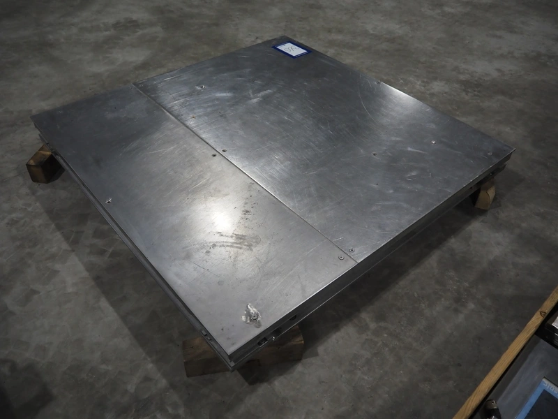 S/s floor weighing scale, dimensions: 1500 mm x 1500 mm x 105 mm. Without indicator.