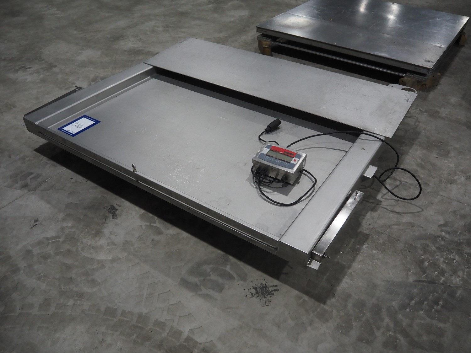 S/s floor weighing scale with OHAUS indicator, model indicator: T32XW, 100/240 V, 50/60 Hz, 1 A, dimensions: 1500 mm x 1480 mm x 140 mm.