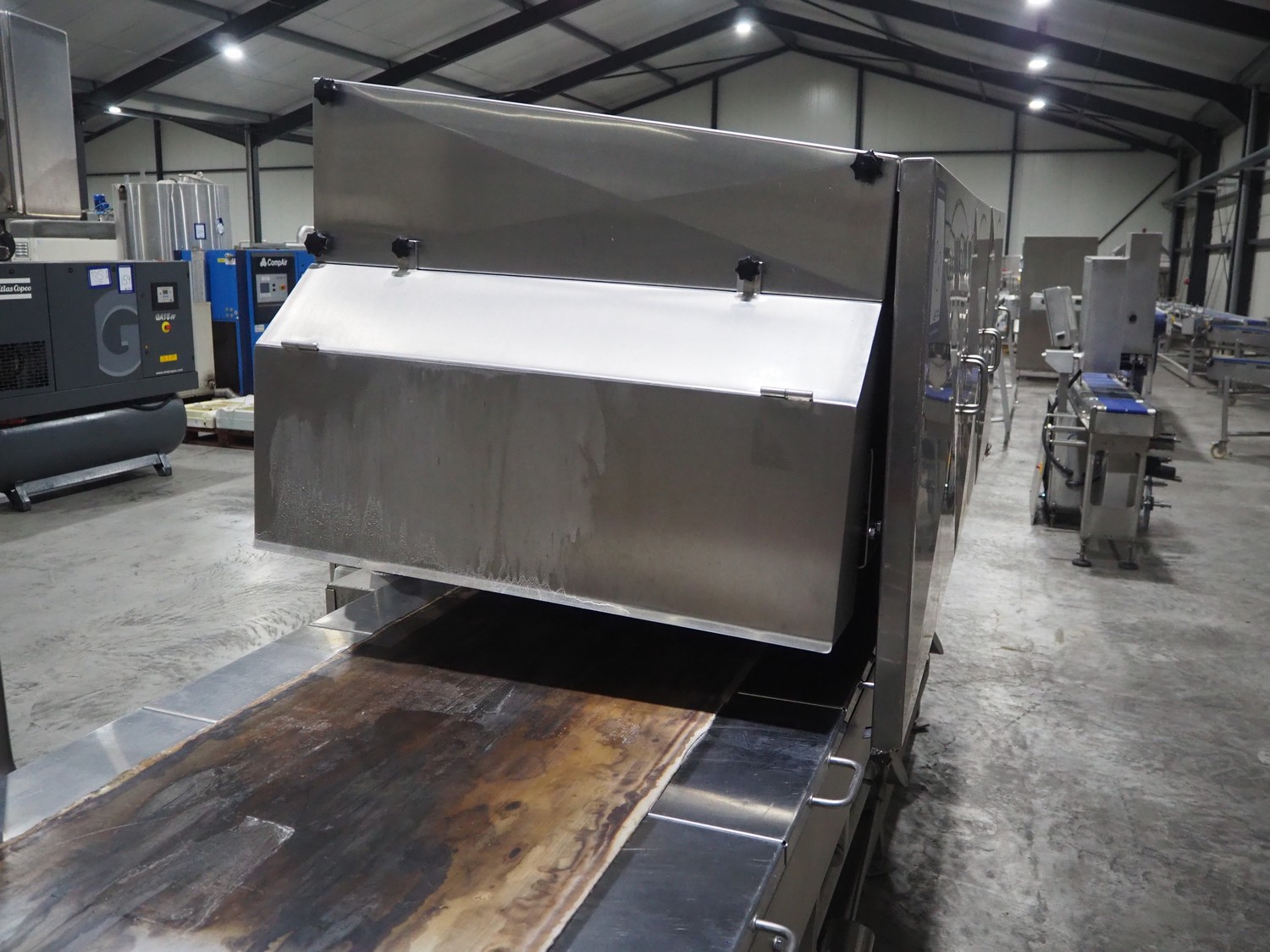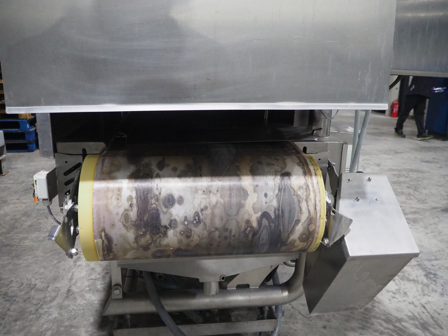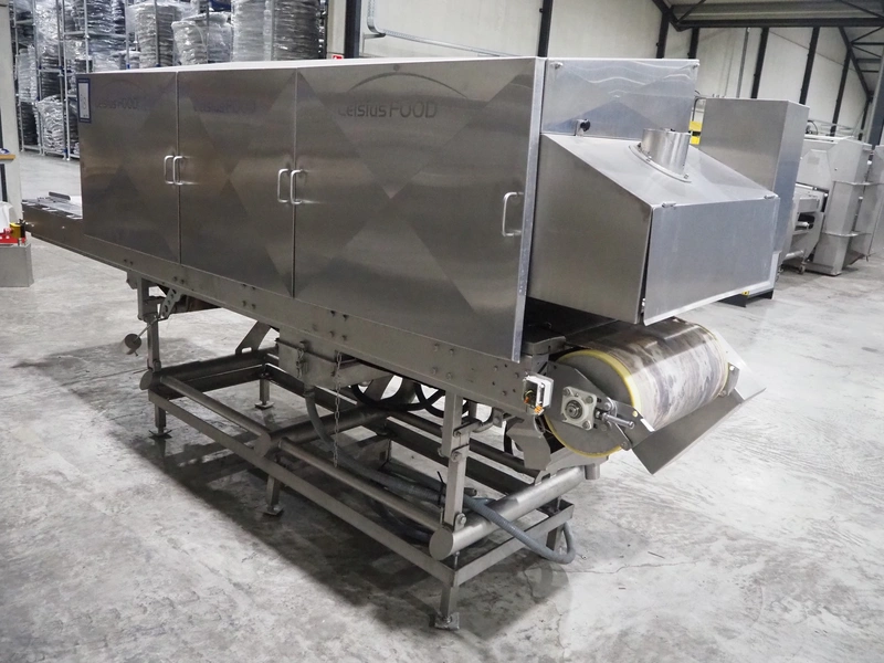 Celsiusfood teflon grill belt, belt width: (1x) 545 mm, (1x) 560 mm, clearance: 545 mm x 115 mm, electric heated, total dimensions: 4000 mm x 1350 mm x 1860 mm.